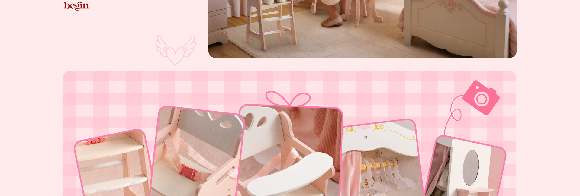 Dieses bezaubernde Rollenspielset enthält alles, was ein Prinzessinnen-Puppenhaus braucht: einen Prinzessinnen-Kleiderschrank, ein rosa Etagenbett, einen Hochstuhl und einen Prinzessinnen-Schminktisch! Perfekt zum Dekorieren eines Mädchenzimmers oder Puppenhauses. Die farbenfrohen Accessoires harmonieren wunderbar mit den zarten Rosatönen und lassen Kinder in eine Prinzessinnenwelt eintauchen. Ganz nebenbei wird auch der ästhetische Sinn gefördert.