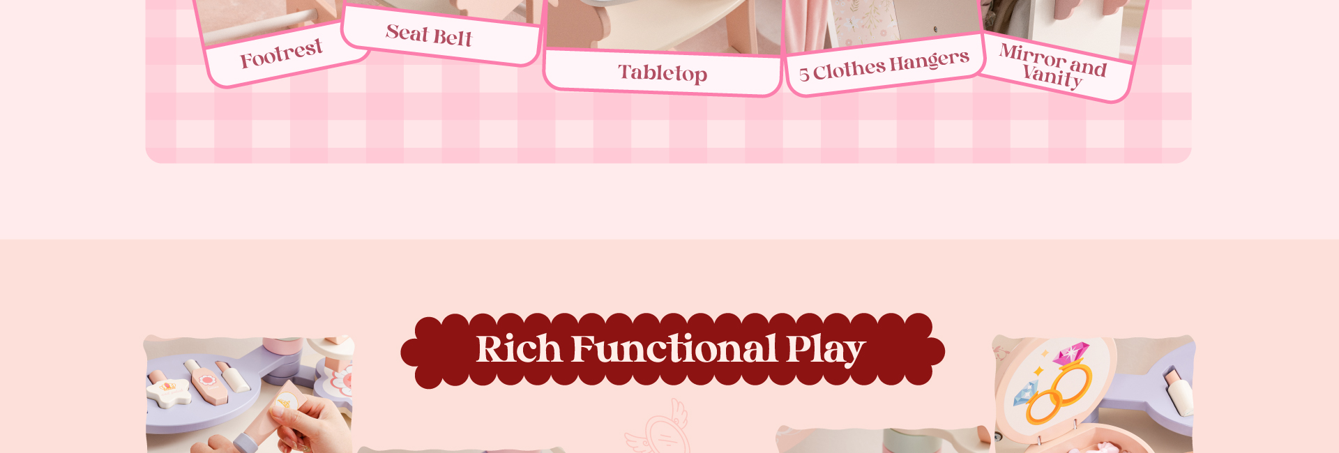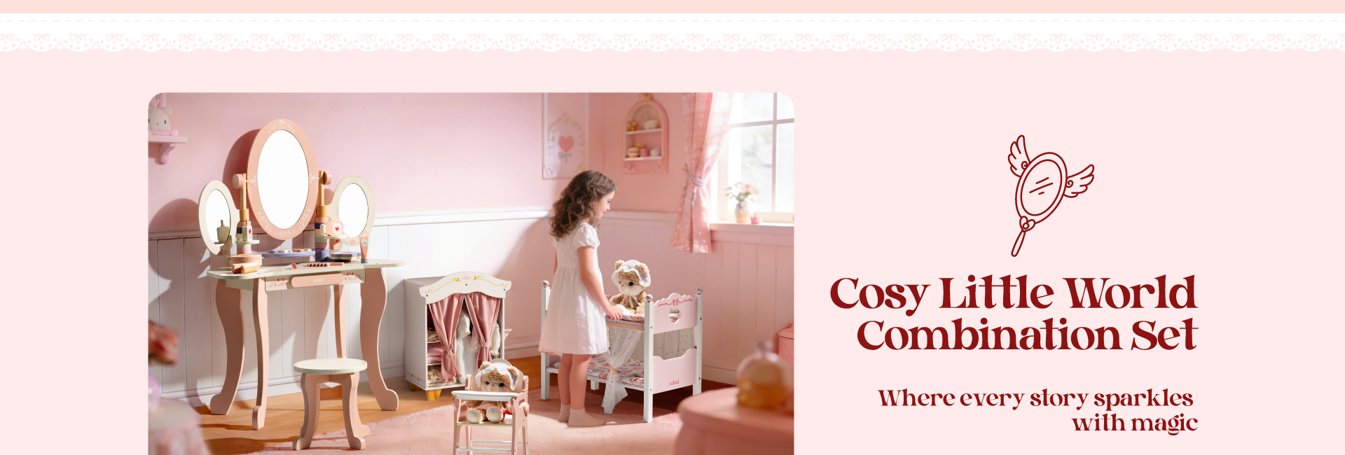 🧸Einfache Aufbewahrung und sauberes Spielen - Jedes Element dieser Princess World Serie verfügt über geräumige integrierte Schubladen, vertiefte Tischplattenfächer und ausreichend Stauraum für die perfekte Organisation aller Puppenkostüme, Kosmetika und mehr. Verabschieden Sie sich von einer unordentlichen Spielumgebung - alles hat seinen festen Platz, was es Ihrem Kind erleichtert, nach jeder Spielsitzung aufzuräumen.