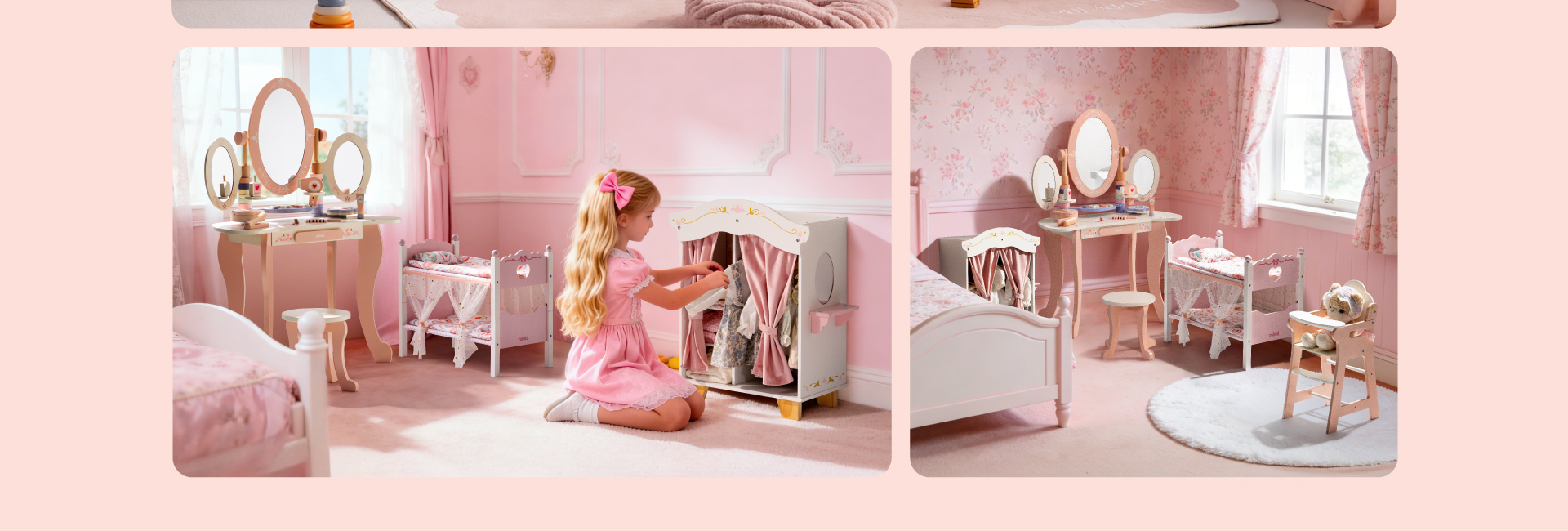 💄Gemütliche Geschichten Serie - Dieses bezaubernde Rollenspielset enthält alles, was ein Puppenhaus für Prinzessinnen benötigt: einen Prinzessinnenkleiderschrank, ein pinkes Etagenbett, einen Hochstuhl und einen Prinzessinnen-Schminktisch! Perfekt zur Dekoration des Zimmers eines kleinen Mädchens oder eines Puppenhauses.