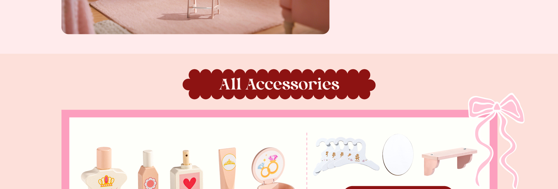💡Weiche und liebevolle Farbgestaltung - Enthält bunte Kleidungsaccessoires, die die sanften Rosatöne ergänzen und die Kinder in eine Prinzessinnenwelt eintauchen lassen. Hilft, das ästhetische Empfinden der Kinder zu entwickeln.