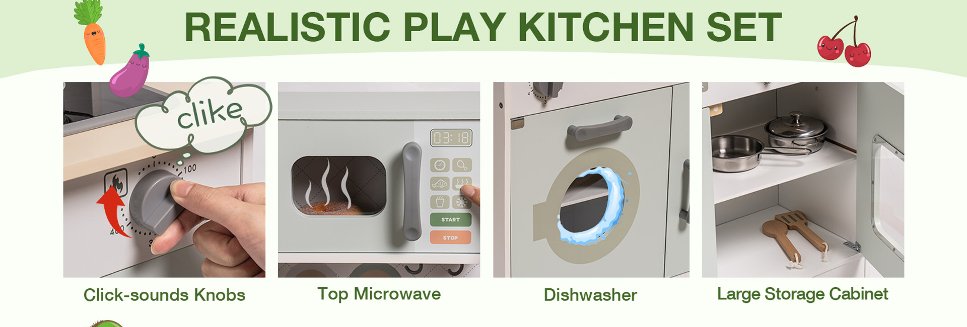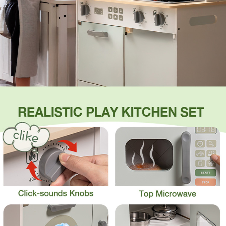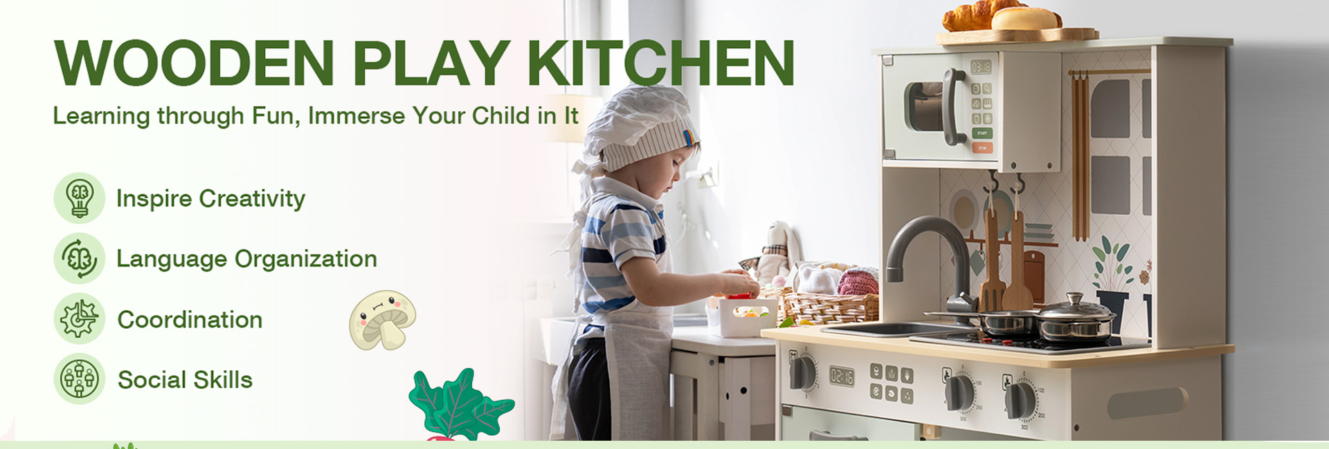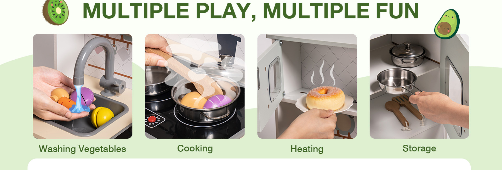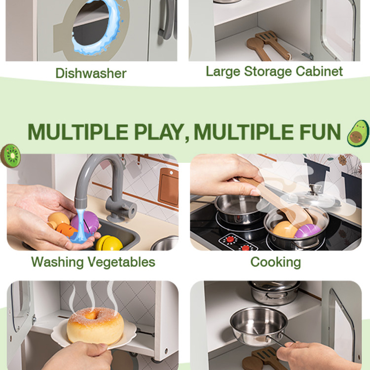 VERANTWORTUNG FÖRDERN, LERNEN DURCH SPIELEN: Mehr als nur ein Spielzeug, dient diese Spielküche als Bildungswerkzeug. Sie ermutigt Kinder, wichtige Lebenskompetenzen wie Organisation, Reinigung und den Umgang mit Zutaten zu entwickeln, während sie in einer sicheren und förderlichen Umgebung Spaß haben.