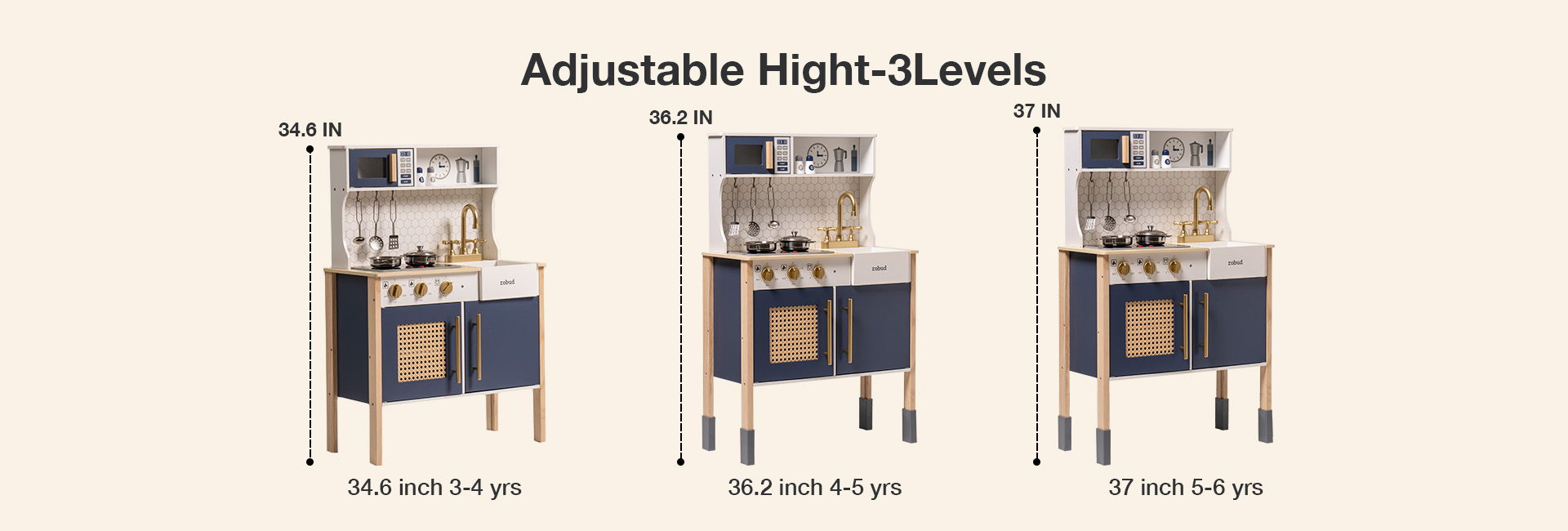 Premium-Geschenk: Mit ihrem Vintage- und stilvollen Aussehen, der robusten Konstruktion und den langlebigen Küchenaccessoires ist dies ein hochwertiges Geschenk, das sowohl für Jungen als auch für Mädchen geeignet ist. Es kann das Wachstum eines Kindes begleiten und Freude und Liebe bringen. Zusätzlich zu ihrer Attraktivität ist die Höhe in drei Stufen verstellbar, sodass sie für Kinder im Alter von 3-7 Jahren geeignet ist und eine verlängerte Spielzeit und Freude gewährleistet.