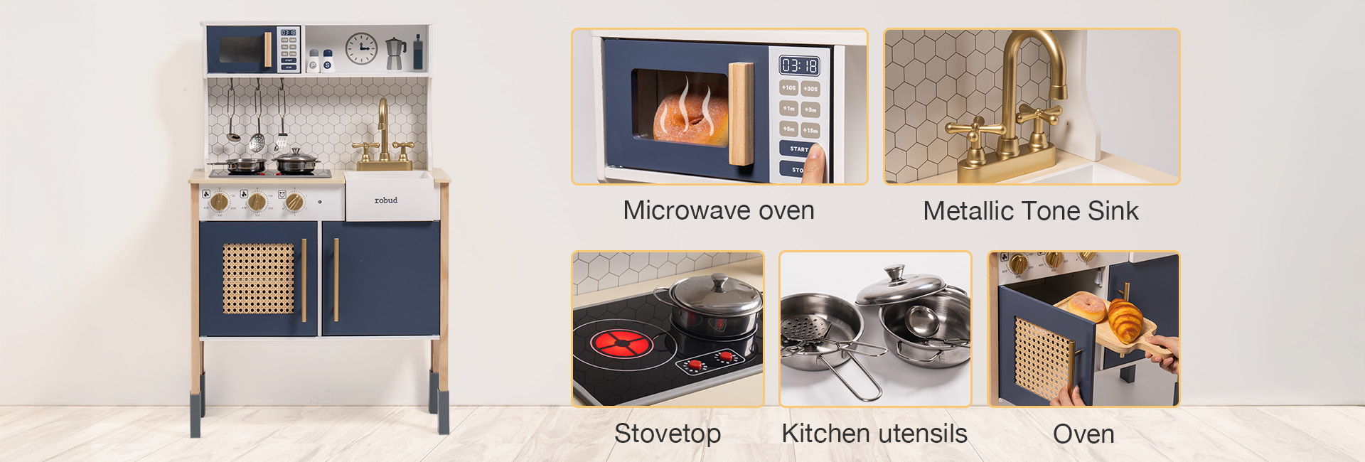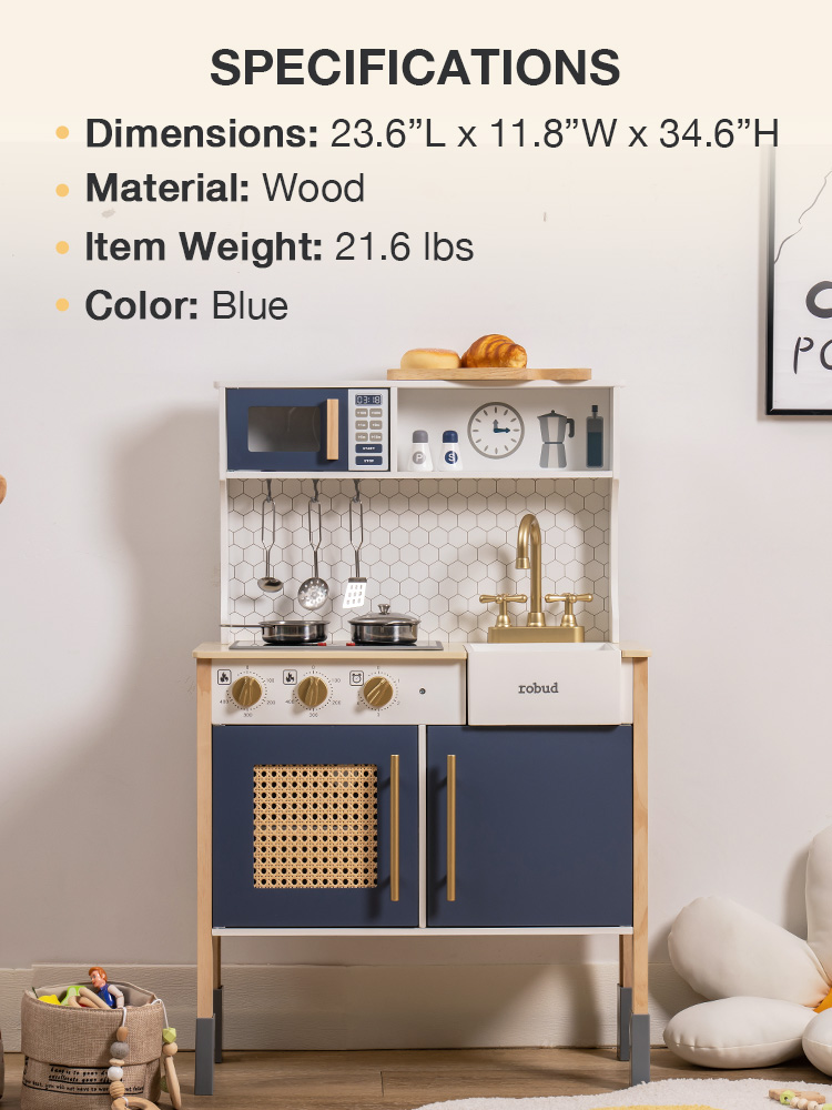 Robud Wooden Kids Play Kitchen Set - Vintage Pretend