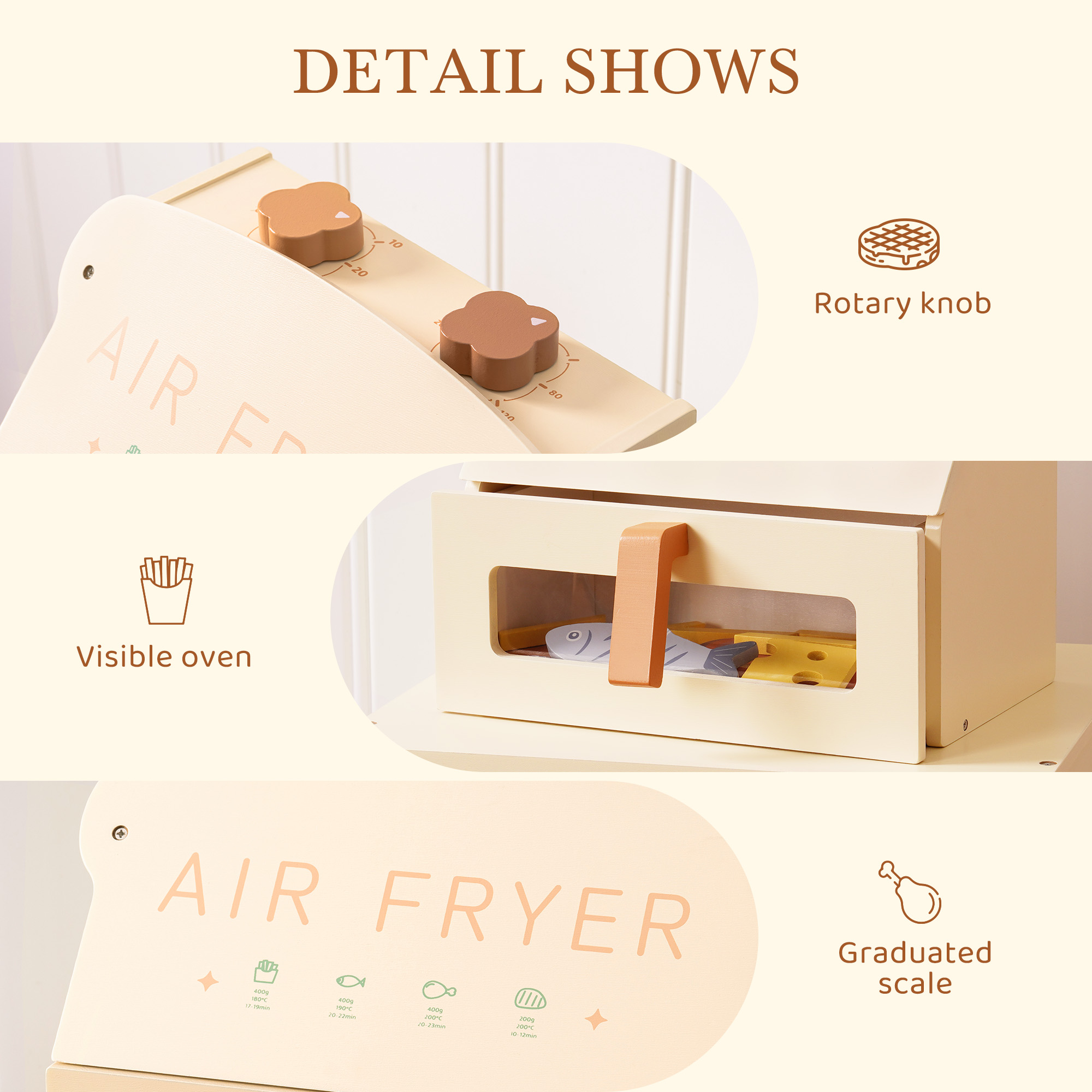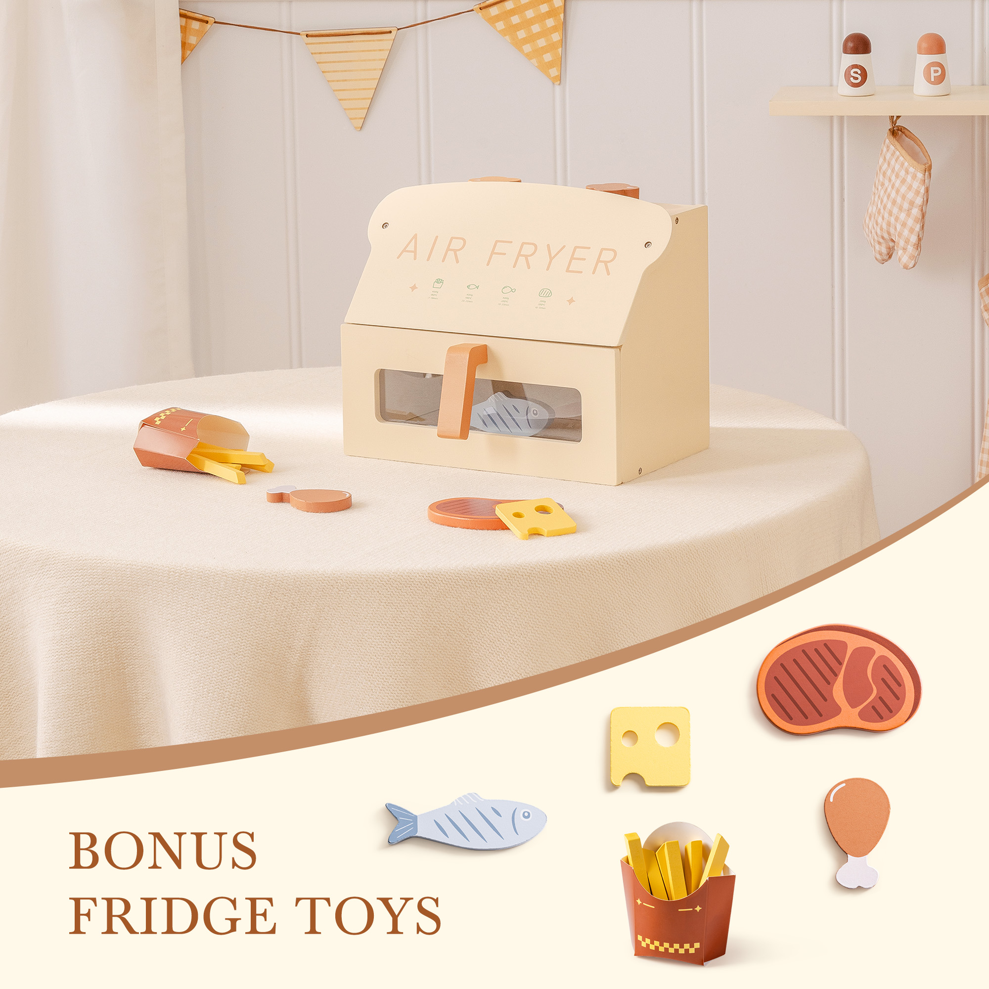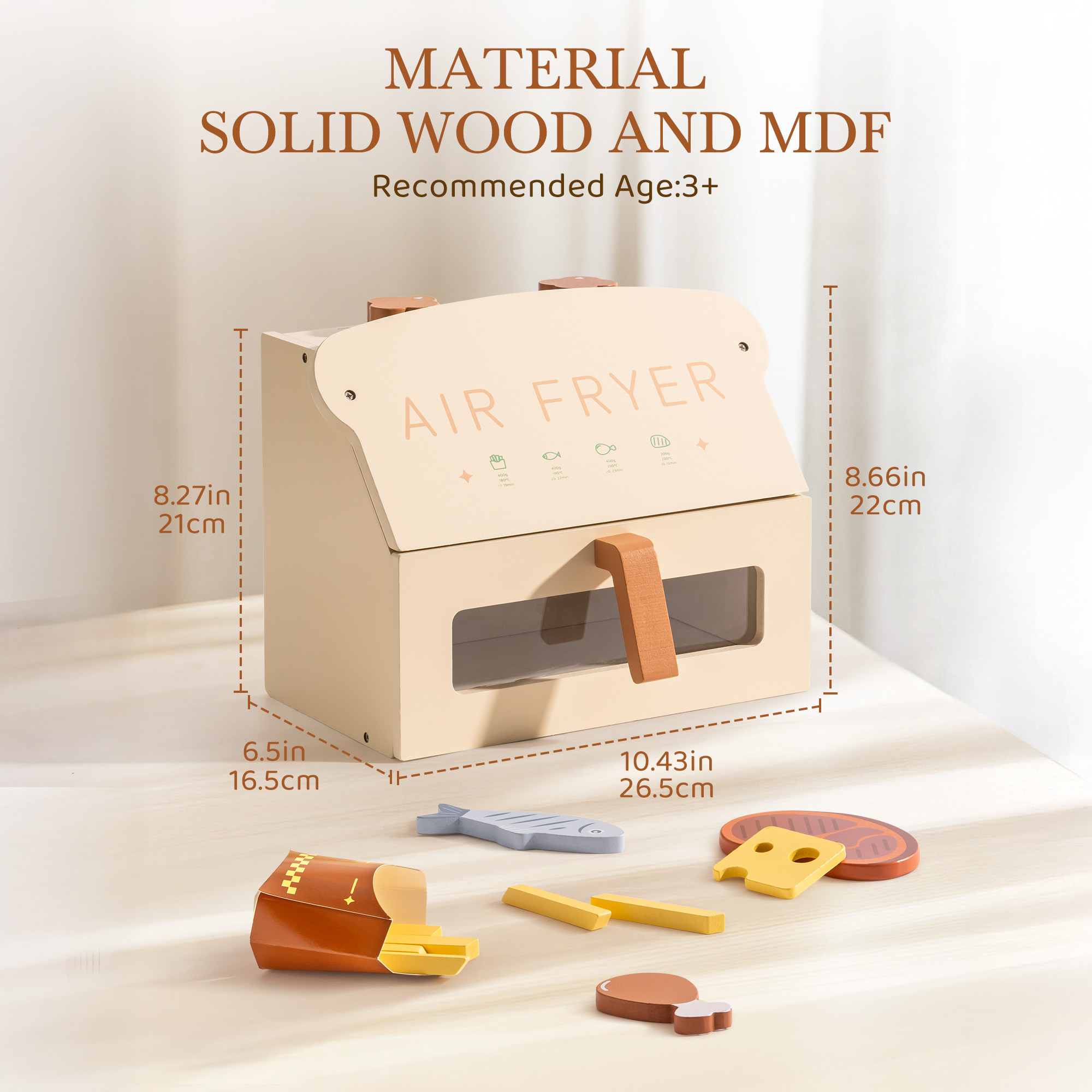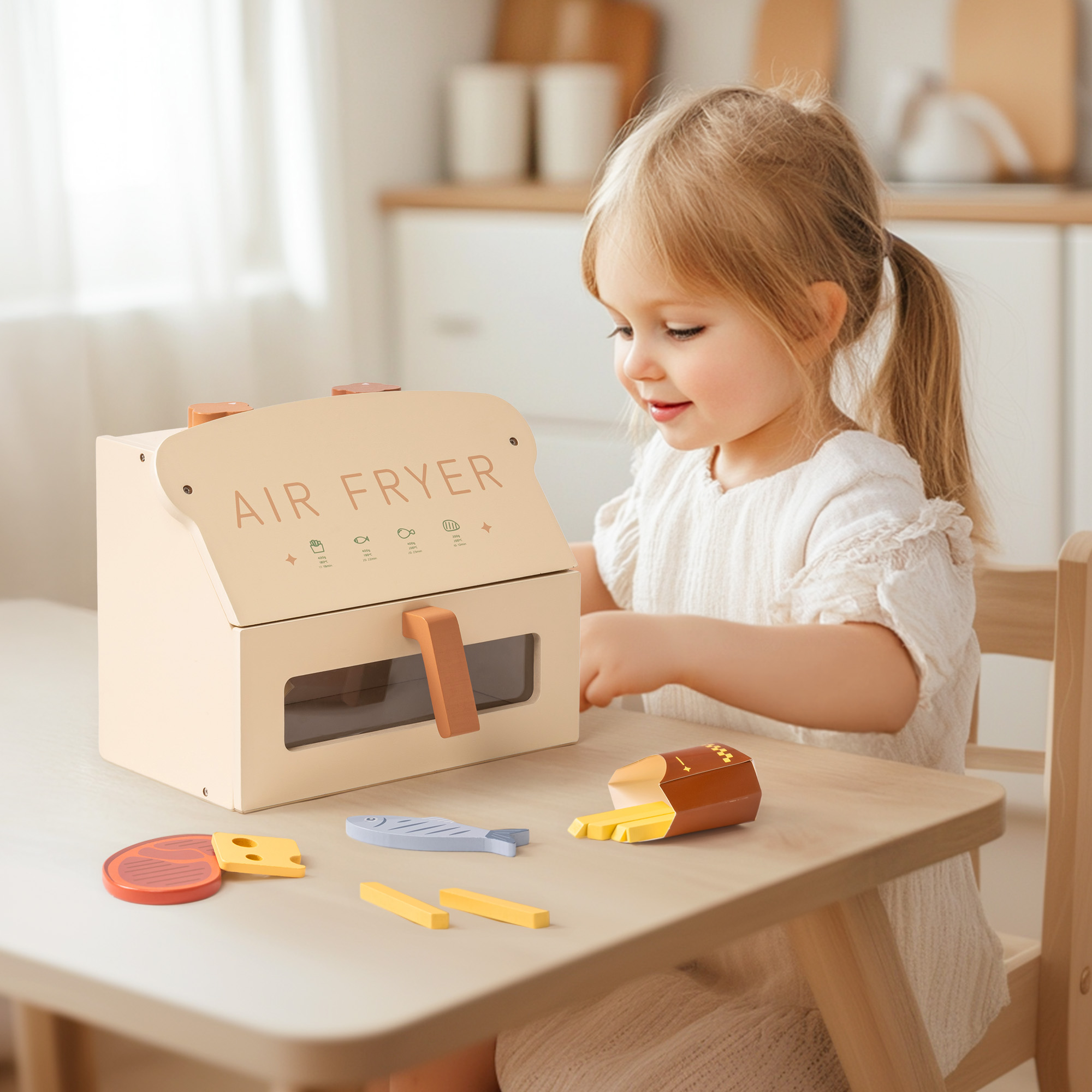 🌟 Interaktives Holz-Luftfritteusen-Spielzeug für angehende Köche - Entfache fantasievolle Kochabenteuer mit dieser kindgerechten Holz-Luftfritteuse! Sie verfügt über einen abnehmbaren Korb, klickbare Knöpfe und realistische Lebensmittelaccessoires für ein immersives Rollenspiel. Perfekt für kleine Hände und entworfen, um Kreativität in jeder Spielküche zu inspirieren!