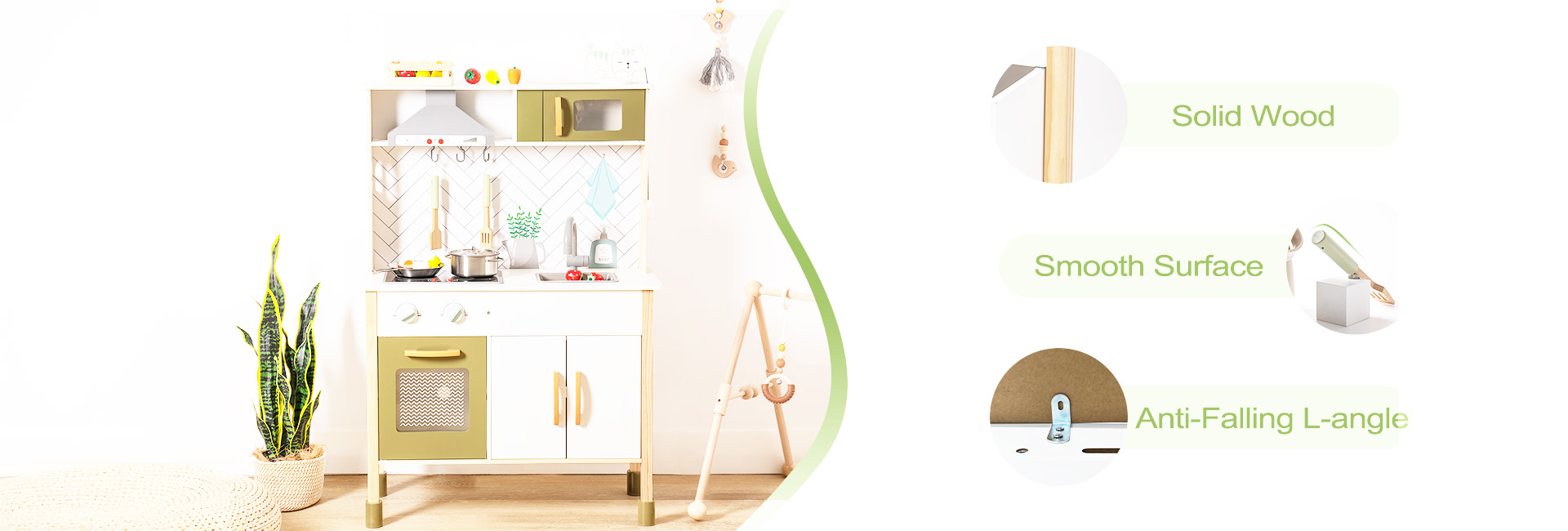 • 🎁Holzspielküche: Hergestellt aus MDF und hochwertigem Holz, erfüllt strenge ASTM- und CPSIA-Sicherheitsstandards und ist für Kinder ab 3 Jahren geeignet. Im Vergleich zu einer Kunststoff-Kinderküche verfügt dieses Spielküchenset für Kleinkinder über eine stabilere Struktur und bietet einen längeren Service.