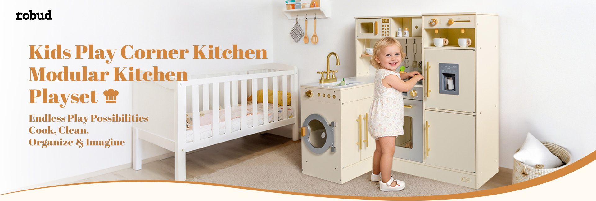 ROBUD  Pretend Corner Kitchen with All-in-One & Combination-Style