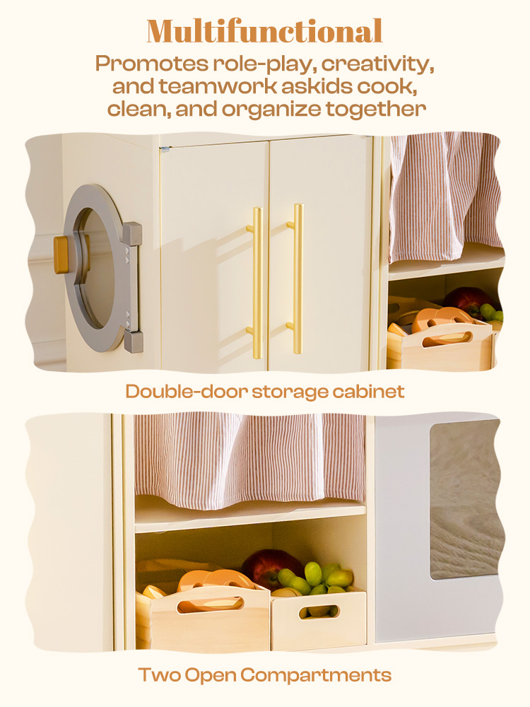 • ZWEI FORMEN, FLEXIBLES LAYOUT: Dieses Holzspielküchen-Set verfügt über ein Kombinations- und ein All-in-One-Eckdesign – leicht umzustellen in mehrere Layouts, um in kleine Nischen oder offene Spielbereiche zu passen. Perfekt für Kinder ab 3 Jahren, verwandelt es jeden Raum in eine realistische Spielküche, die nahtlos mit Ihrer Wohnkultur harmoniert und gleichzeitig die Flexibilität des Spielzimmers maximiert.