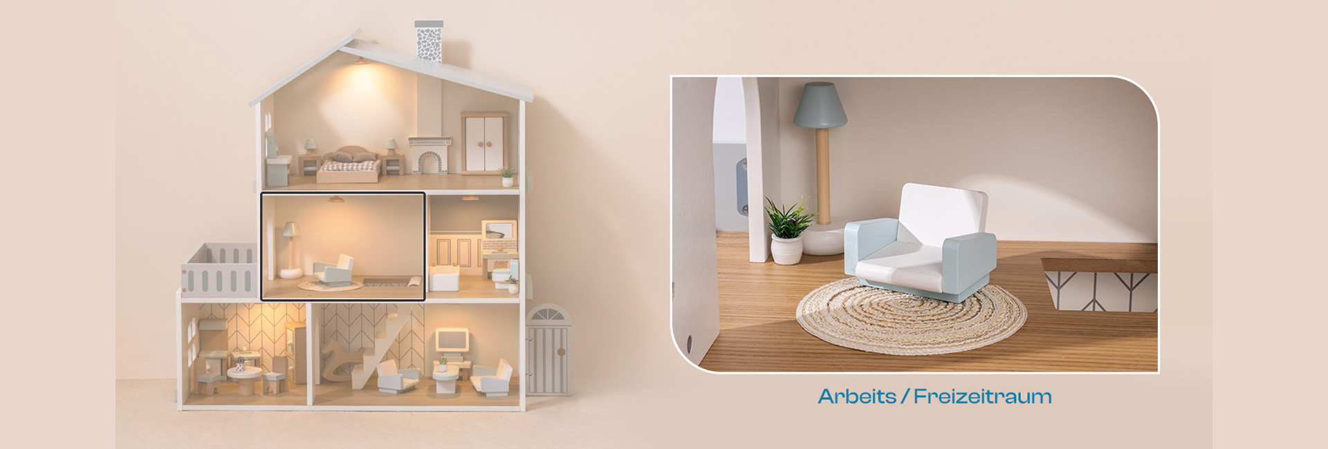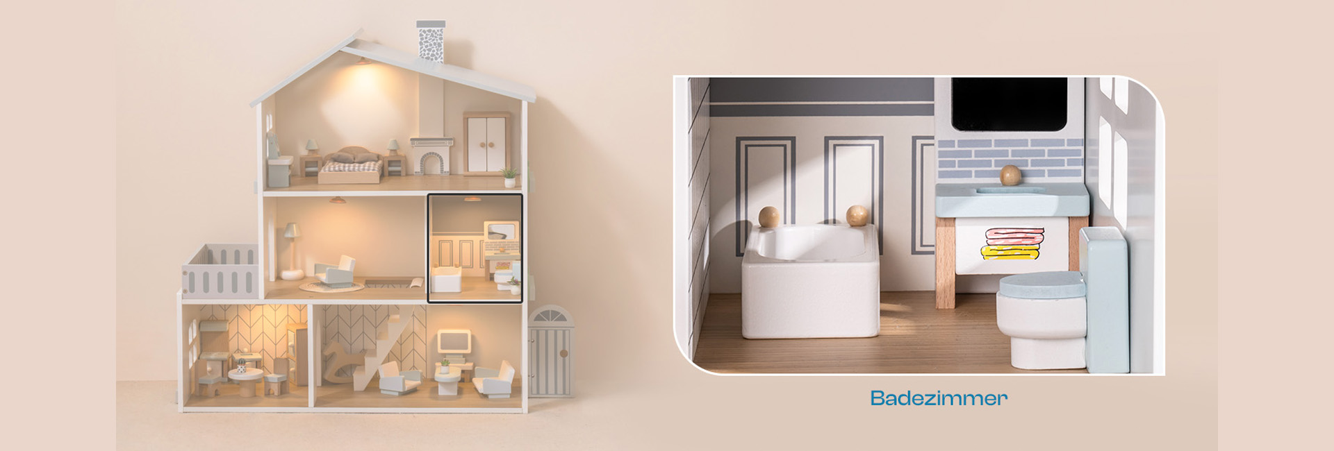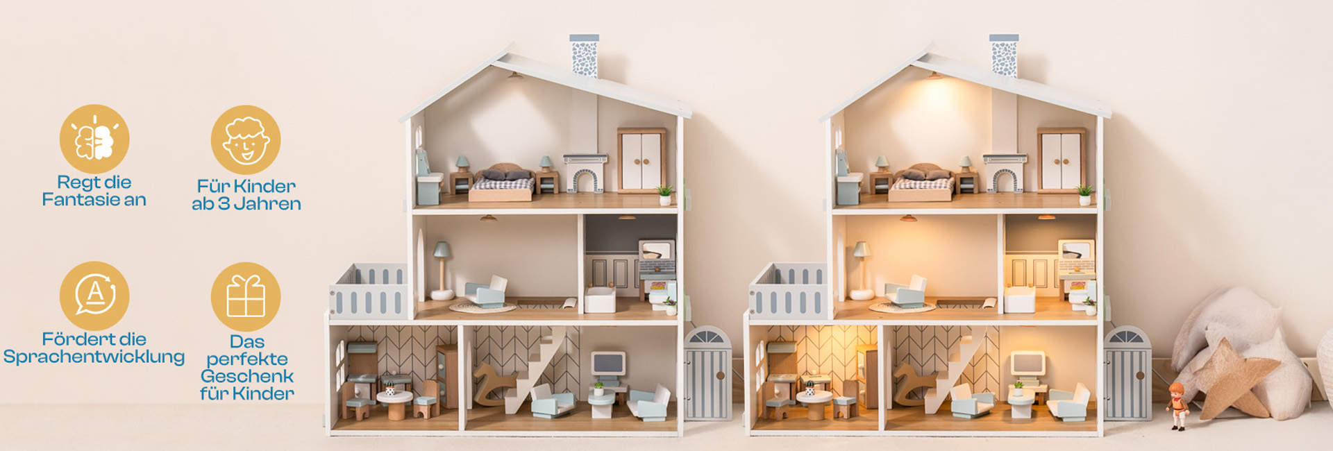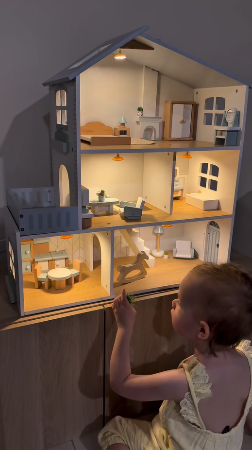ROBUD Puppenhaus aus Holz Lichtern