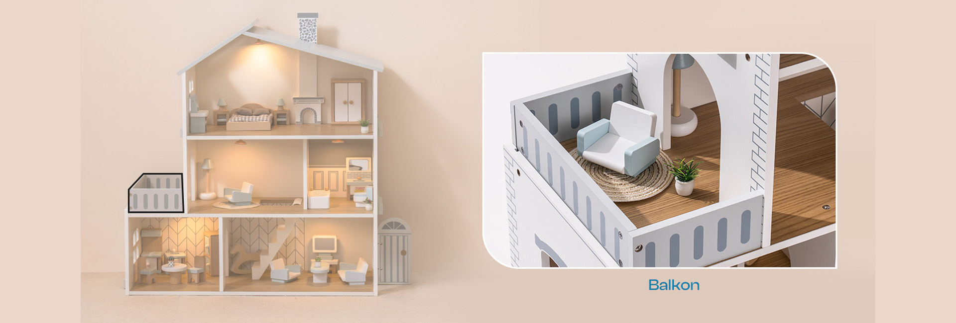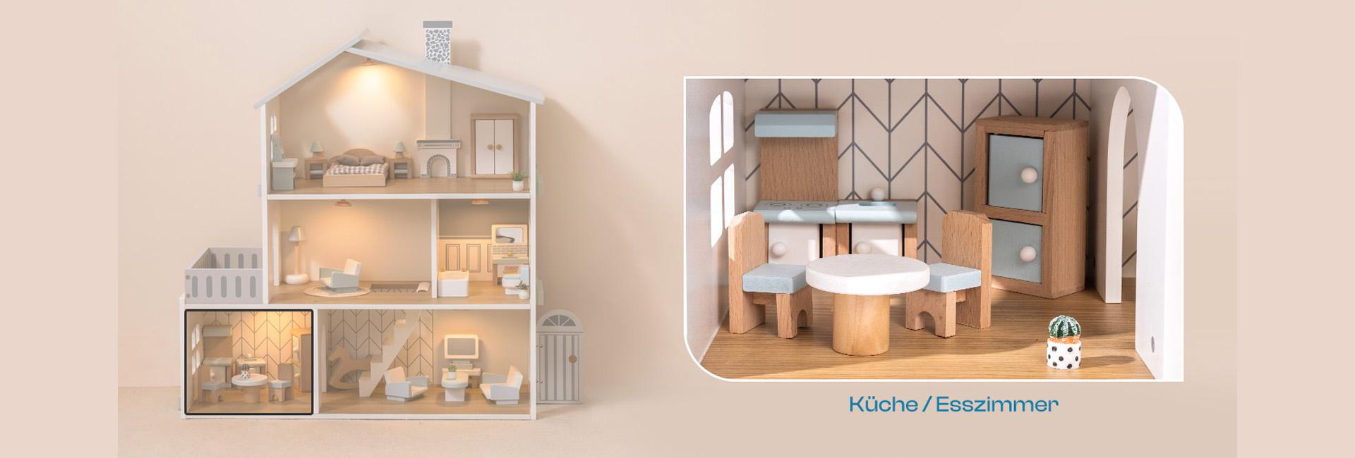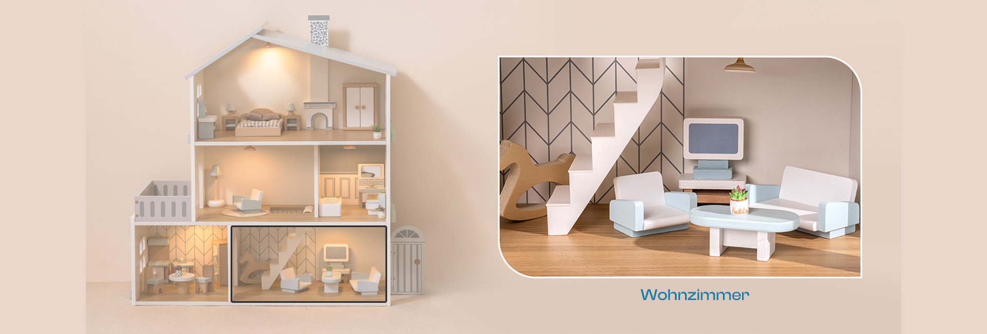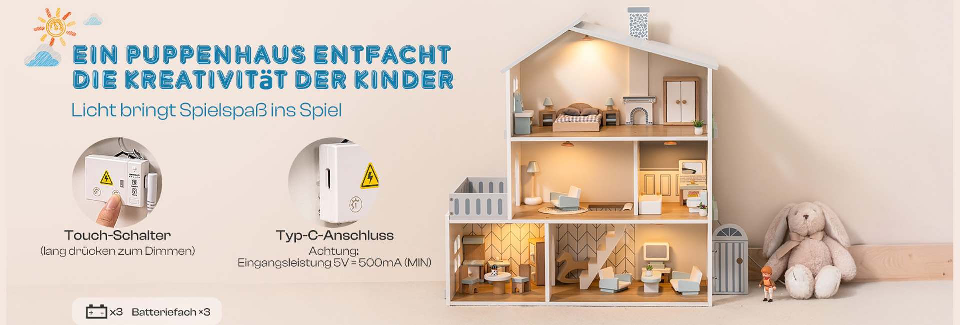ROBUD Puppenhaus aus Holz Lichtern