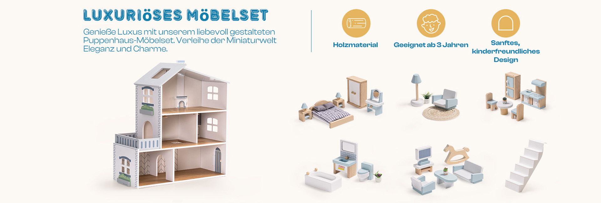 Entführen Sie Ihr Kind in eine Welt der Fantasie mit unserem bezaubernden Holzspielzeug „Romantisches Puppenhaus“, das speziell für die Kleinen entwickelt wurde. Dieses hochwertig verarbeitete und mit exquisiten Details verzierte Puppenhaus ist eine zauberhafte Oase für kreatives Spielen. Die solide Holzkonstruktion sorgt für Langlebigkeit und macht es zu einem wertvollen Spielgefährten.