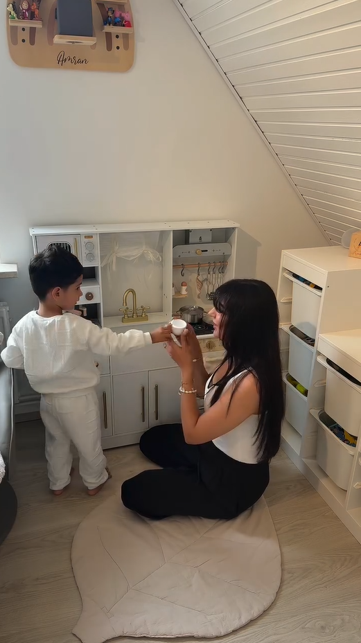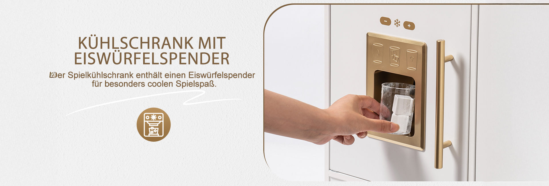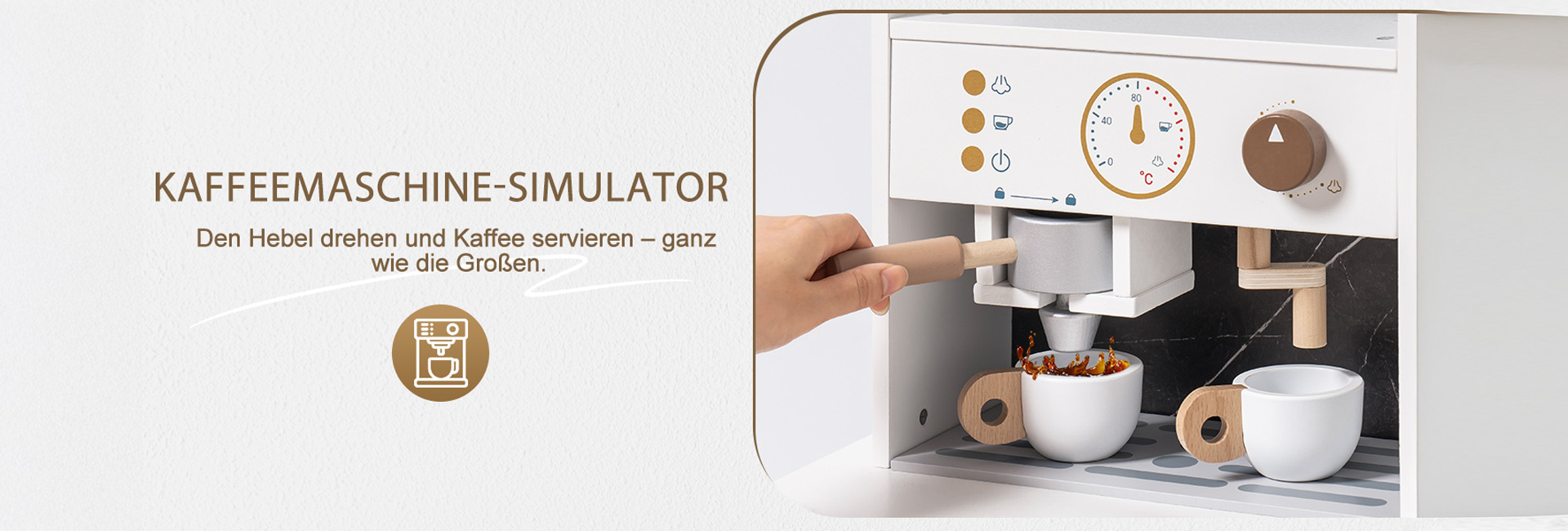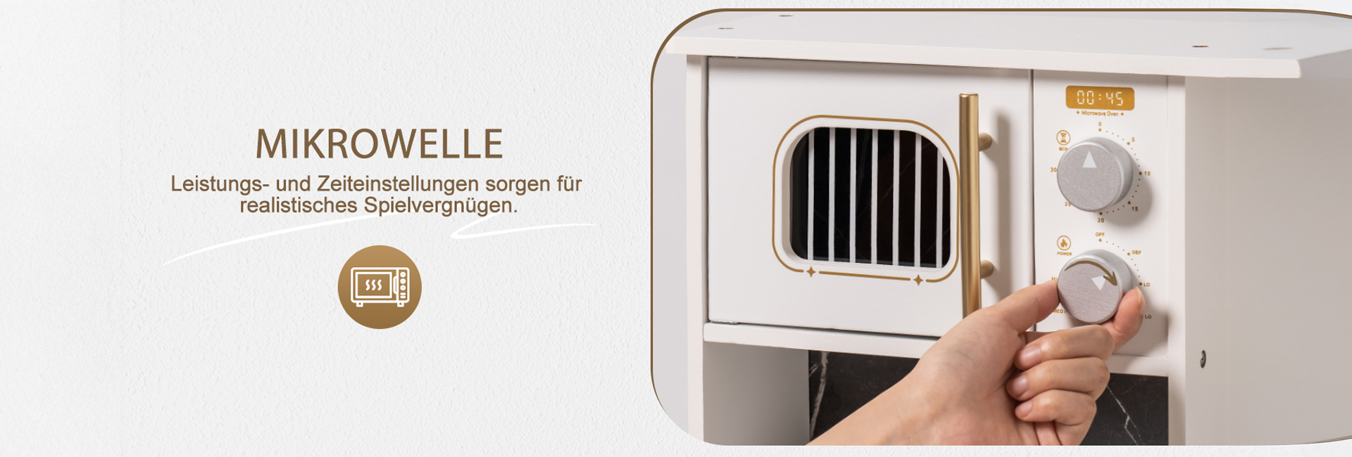 ELEGANTES AUSSEHEN, AUFMERKSAMKEIT FÜR DETAILS: Mit einem schlanken weißen Gehäuse und goldenen Akzenten passt dieses stilvolle Set perfekt in jeden Raum. Details wie die Kaffeemaschine, Vorhänge, Dunstabzugshaube und Aufbewahrungsschränke verstärken das luxuriöse Gefühl und geben Ihrem Kind eine einzigartige Spielküche.