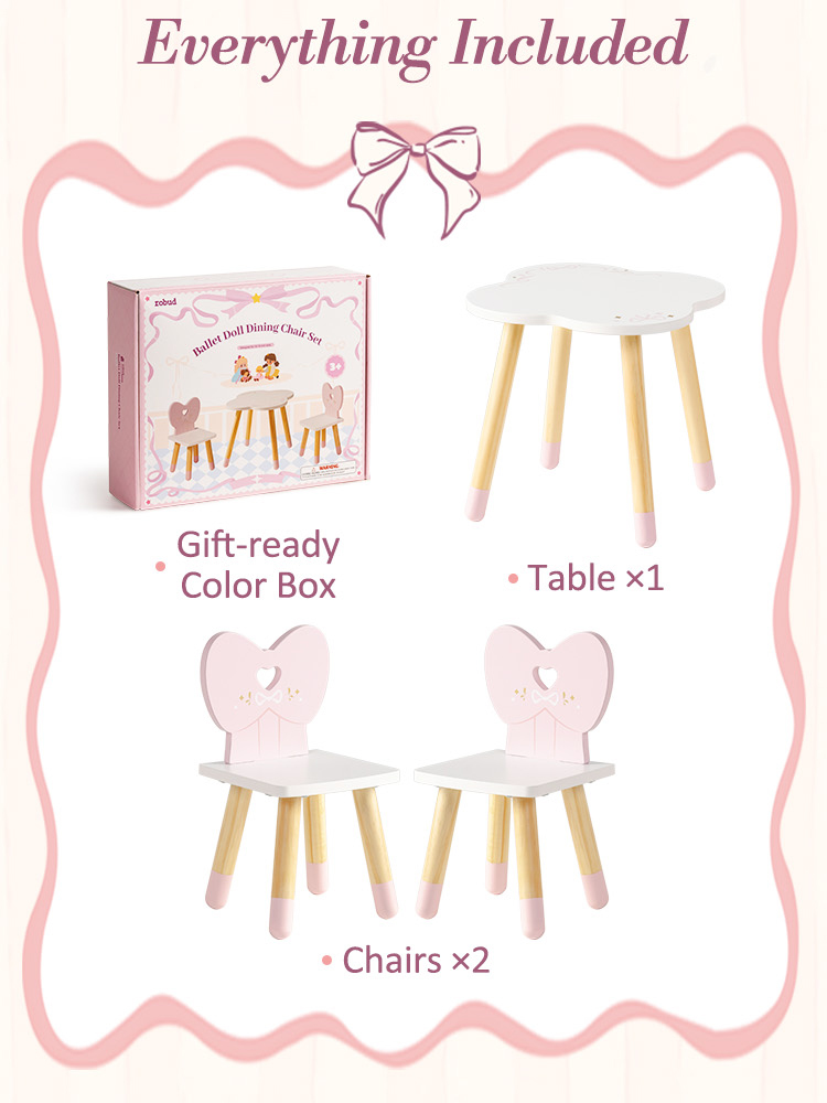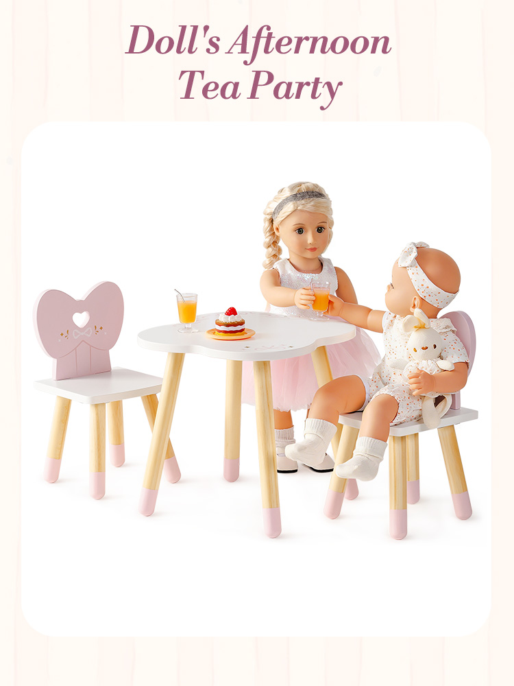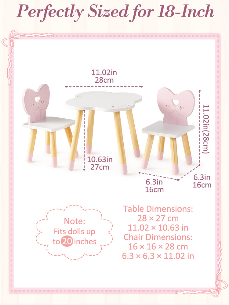 💗Charmantes 3-teiliges Puppen-Essset: Dieses Set umfasst 1 wolkenförmigen Tisch + 2 Stühle mit adorablen Schleifen-Herz-Rückenlehnen, die ein Herz-Ausschnitt und subtile Sternen-Details aufweisen – der perfekte Essplatz für Puppen unter 18 Zoll, um sich bei Rollenspielen, Teepartys oder Spielzeiten zu vergnügen.