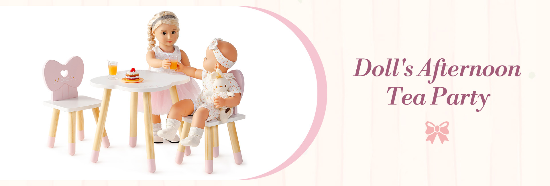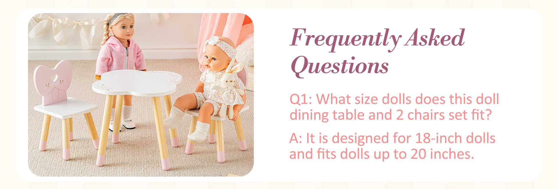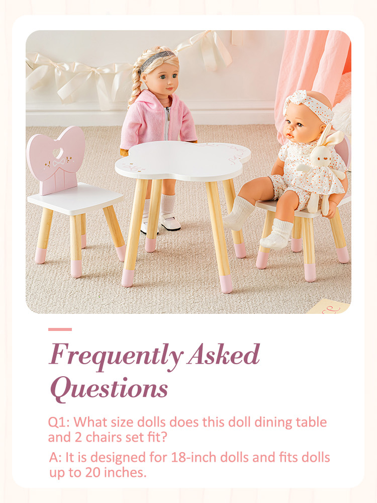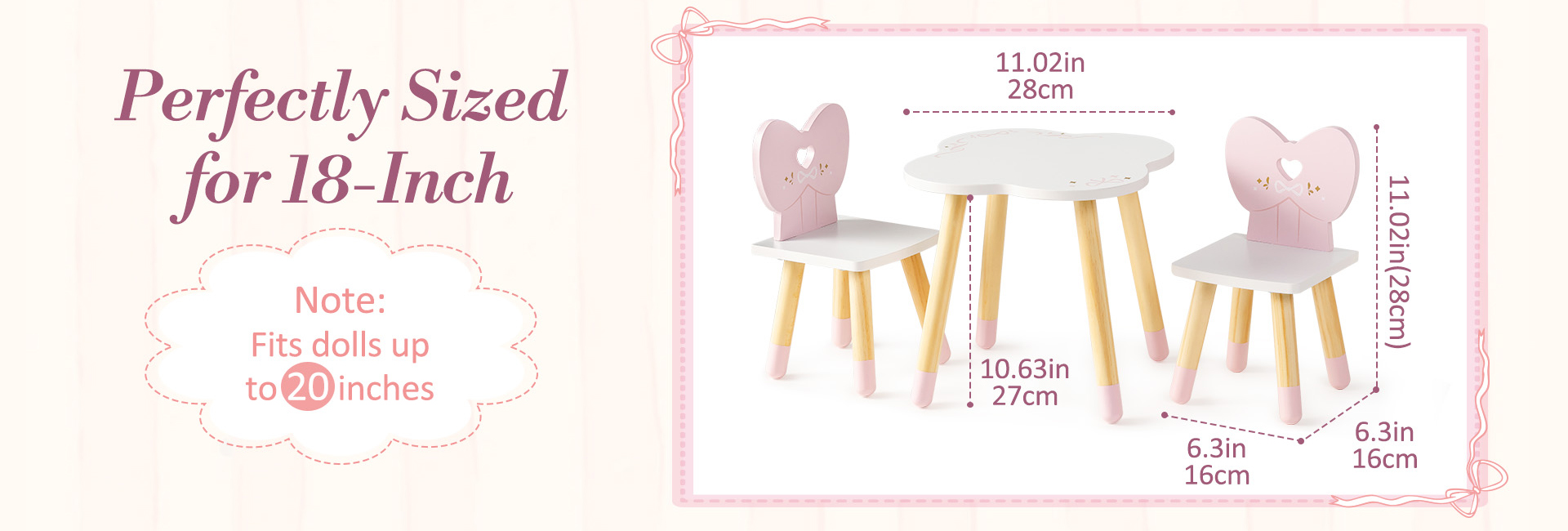 ✨Perfekte Passform für Puppen unter 18 Zoll: Speziell für Puppen unter 18 Zoll entworfen, sind Tisch und Stühle so dimensioniert, dass die Puppen bequem sitzen können, was realistisches Rollenspiel wie „eine Teeparty ausrichten“ oder „einen Snack teilen“ unterstützt.