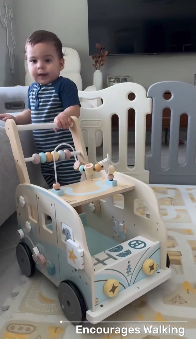 Abenteuerlicher Urlaubsbus-Walker: Begeben Sie sich auf eine fantasievolle Reise mit unserem entzückenden Urlaubsbus-Walker! Inspiriert von der Freude an Urlaubsabenteuern, verfügt dieser Walker über verspielte Blöcke mit Wal- und Leuchtturm-Themen, die dem Spielzeit einen Hauch von Magie verleihen. Mit seinem adorablen Rückspiegel und dem realistischen Ganghebel entfacht er die Vorstellungskraft und regt die Kreativität jedes jungen Entdeckers an.
