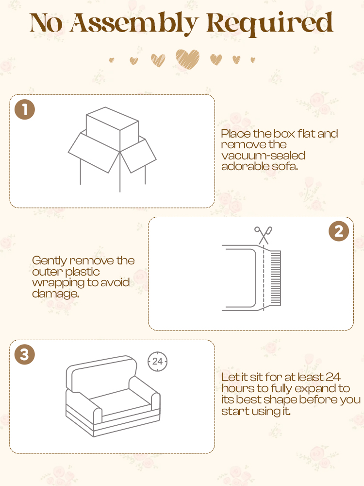 🌱 *Kompakte Installation* 🌱 – Ihr Kleinkind-Sofa wird komprimiert geliefert, um Ihren CO2-Fußabdruck zu reduzieren! Lassen Sie es 1-3 Tage natürlich expandieren – der knitterresistente Bezug lässt sich leicht anbringen. Machen Sie sich bereit für Abenteuer, ohne sich um den Zusammenbau zu kümmern!