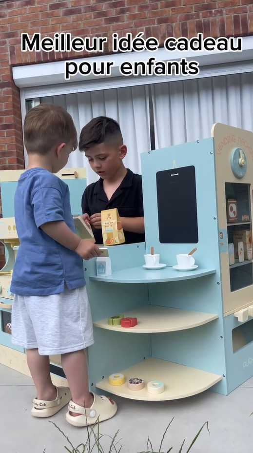 Kindercafè Spielset: Dieses Spielzeugset enthält eine Vielzahl von Einrichtungen wie Verkaufsautomaten, Regale, Theken, Kassierer, Kaffeemaschine, Brotmaschine und vieles mehr. Die realistische Ausstattung sorgt dafür, dass Kinder stundenlangen Spielspaß genießen, ohne sich zu langweilen!