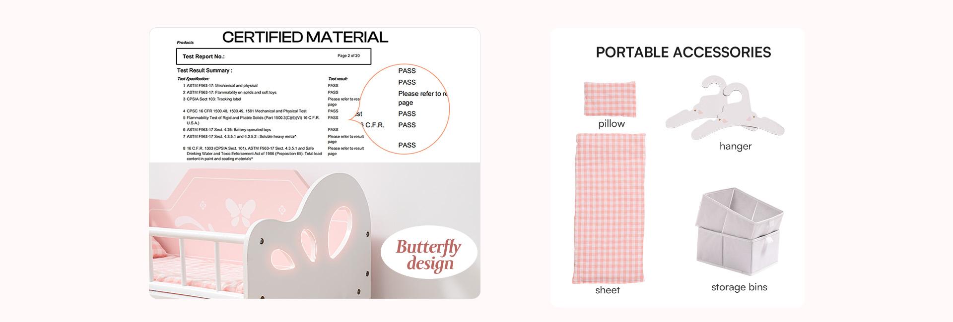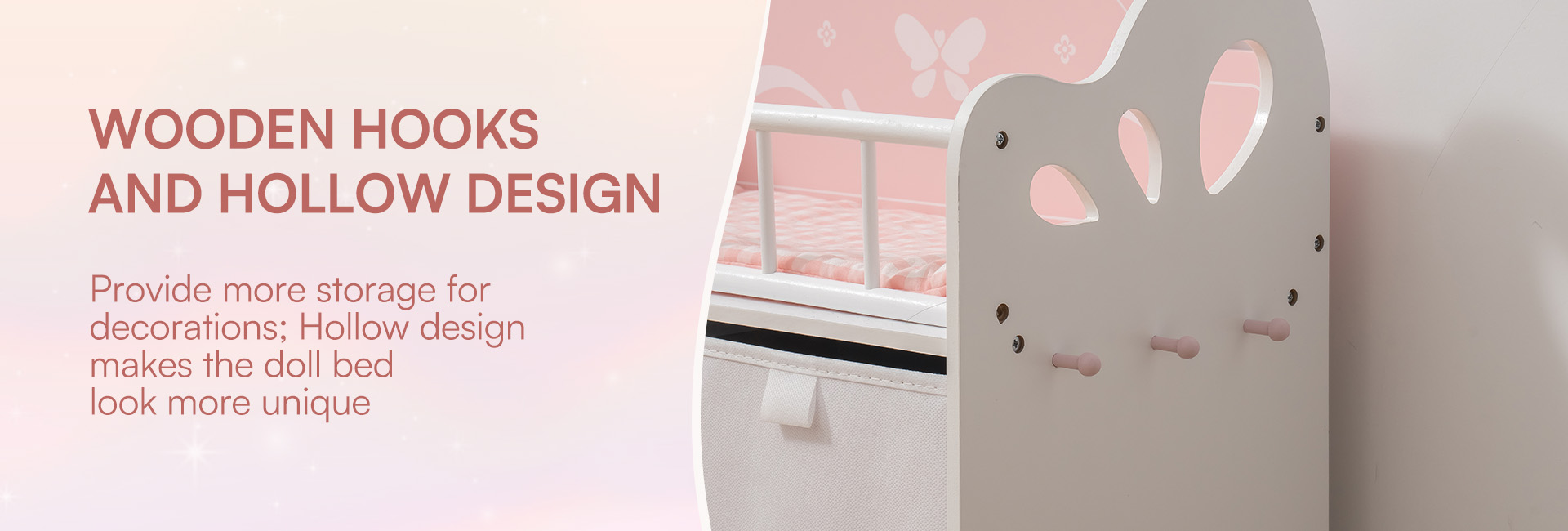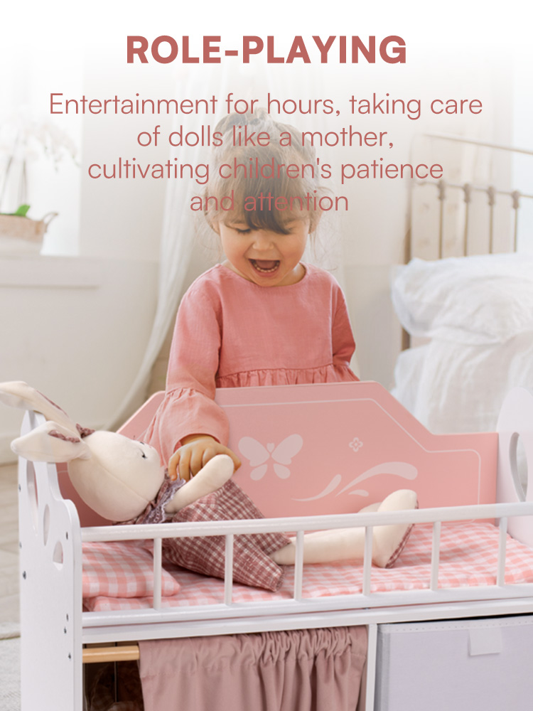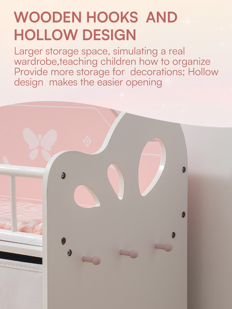Niedliches und stilvolles Design - Mit einem charmanten Rosa-Weiß-Farbschema, Schmetterlingsdetails und Stoffaufbewahrungsboxen ist dieser Schrank nicht nur funktional, sondern auch ein optisches Highlight für jede Puppenumgebung.