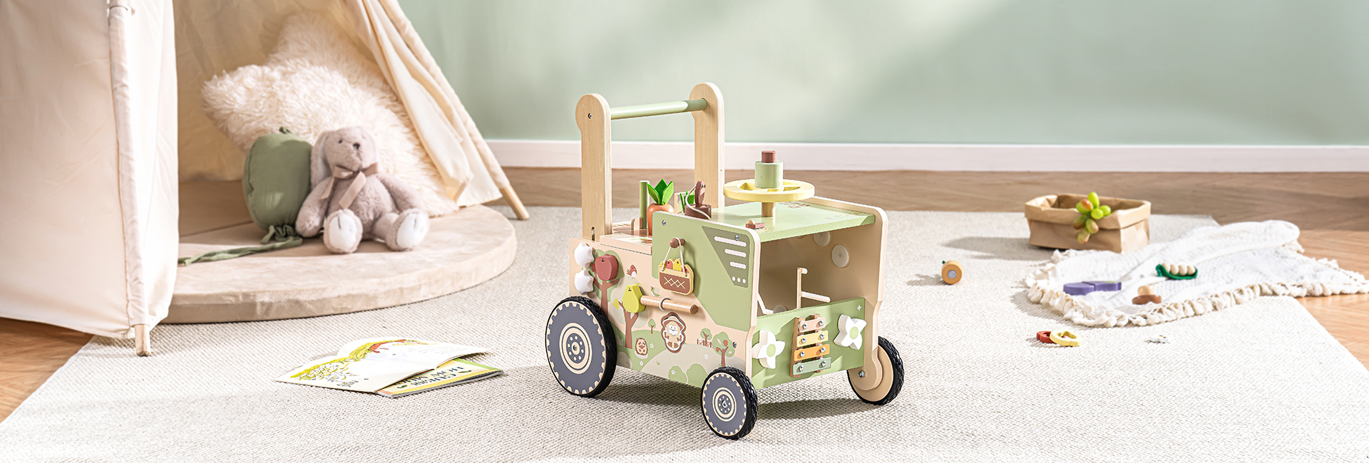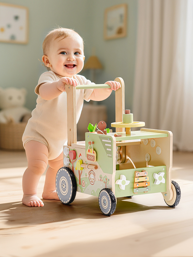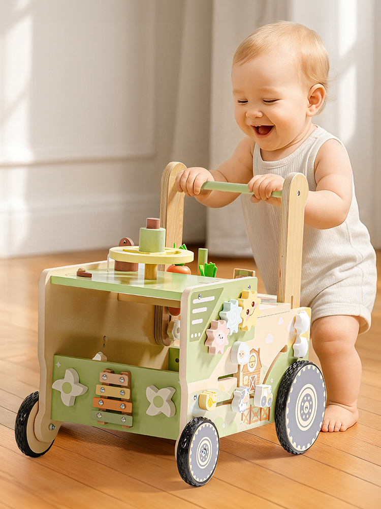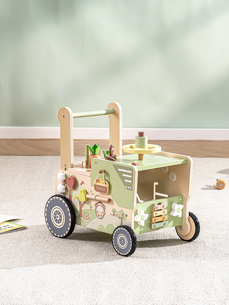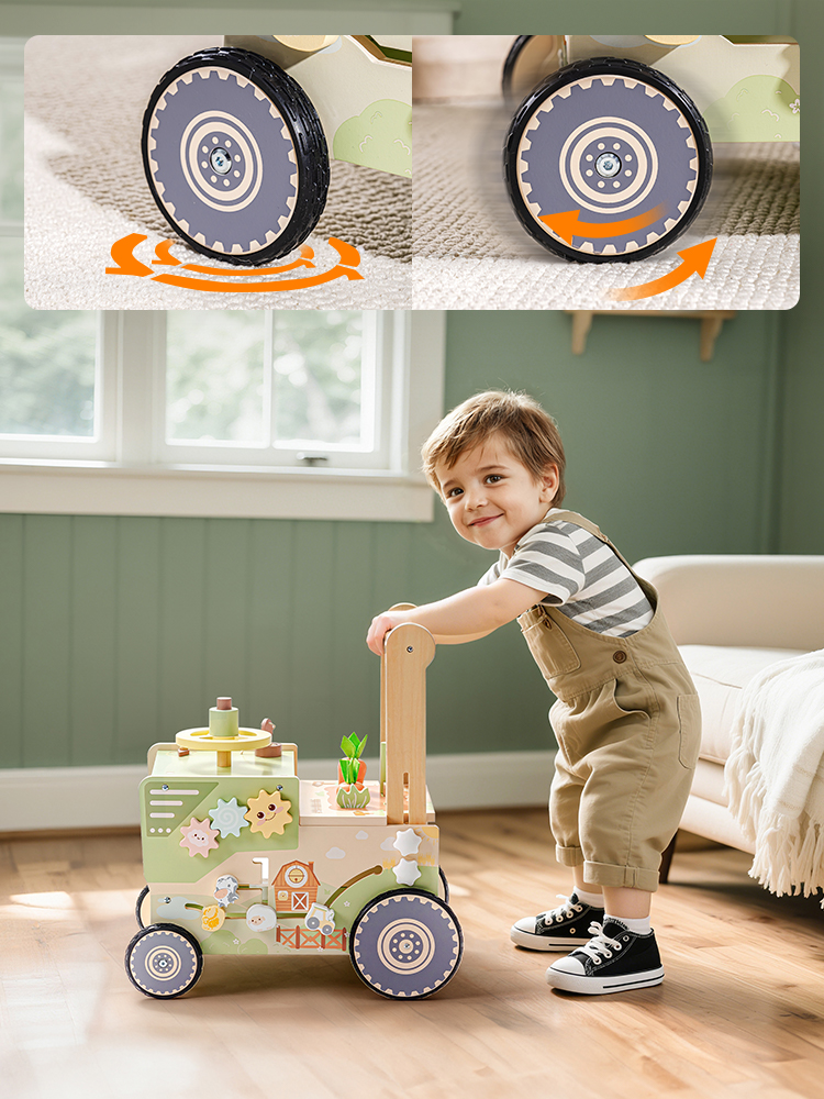 • 🚜 Lustiges Traktor-Design – Dieser Lauflernwagen für Kleinkinder hat die Form eines kleinen Traktors in sanftem Grün und macht ein fröhliches „Piep-Piep“-Geräusch. Er wird schnell zum Liebling der Kinder und bringt die Freude am Bauernhofleben direkt zu Ihnen nach Hause! Mit niedlichem Holzgemüse, fröhlichen Bauernillustrationen und liebevollen kleinen Details fühlt sich jeder Schritt Ihres Kindes wie eine wunderbare Reise auf dem Bauernhof an.