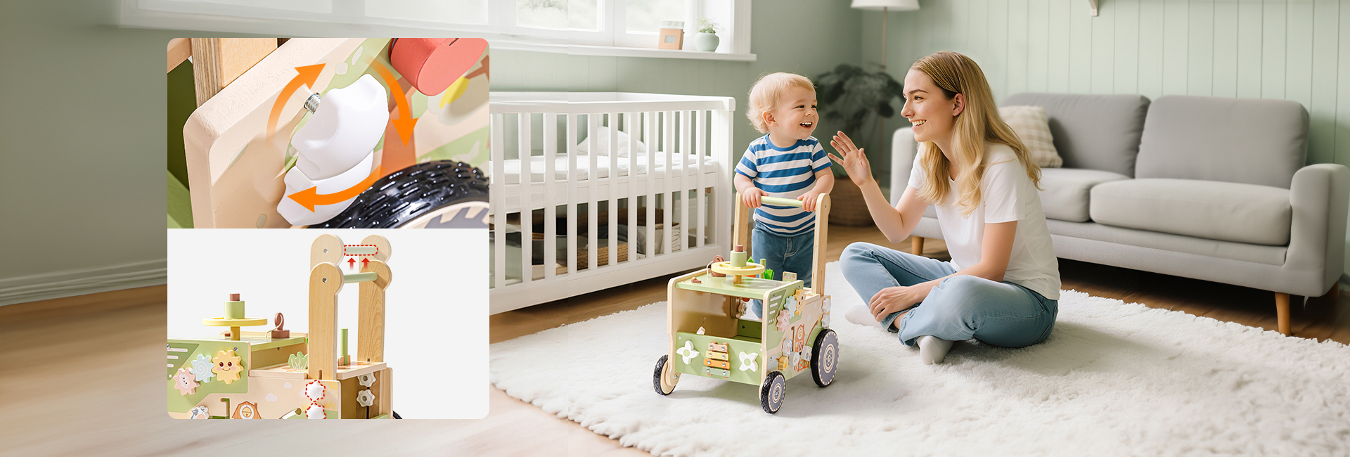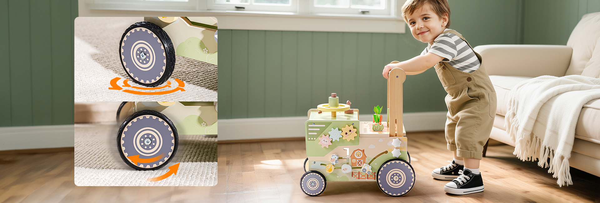• 🍎 Sichere Geschwindigkeitskontrolle – Die Räder verfügen über einen einstellbaren Widerstand, sodass Eltern die Geschwindigkeit selbst steuern können. Das gibt Babys, die gerade erst laufen lernen, zusätzliche Stabilität und hilft ihnen, mit jedem Schritt mehr Selbstvertrauen zu gewinnen.