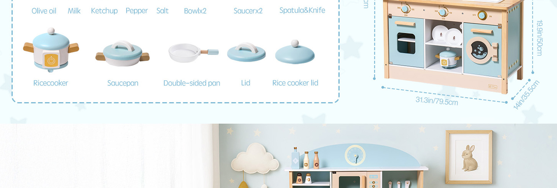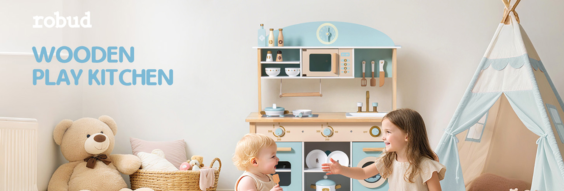 Robud Wooden Kids Kitchen PlaySet Seris - Green and Gold