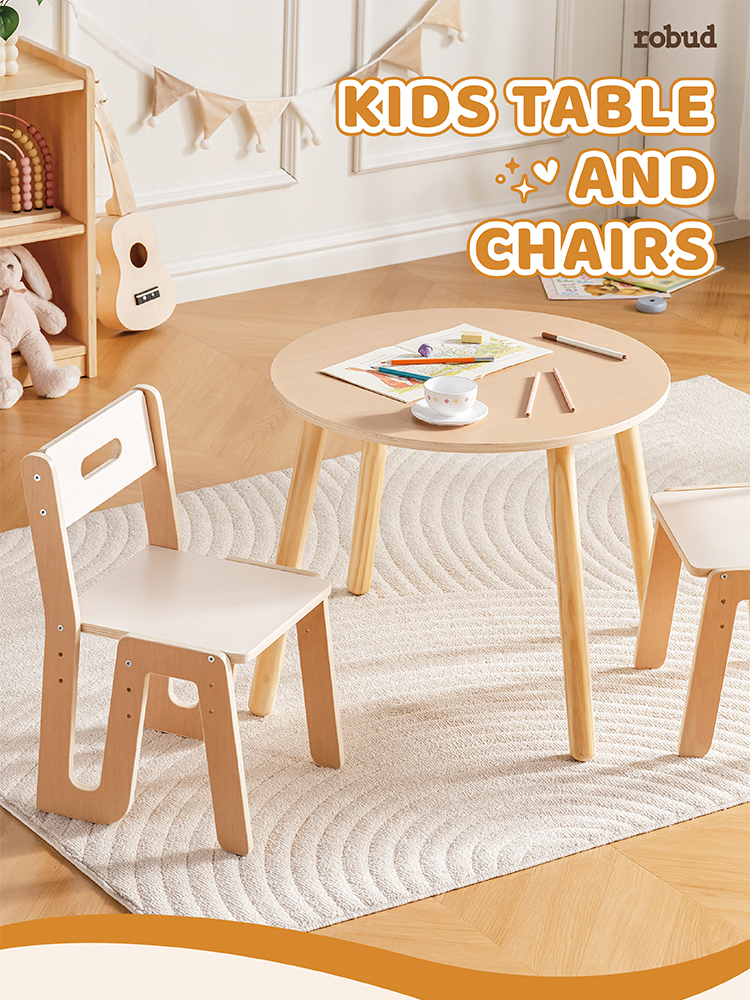 3-teilige Kinder Tisch- und Stuhlset: Unser Kinder Tisch- und Stuhlset umfasst 2 Stühle und einen runden Tisch. Es schafft eine komfortable Umgebung für Kinder, wie z.B. Essen, Zeichnen, Spielen und Lernen. Mit diesem Tisch- und Stuhlset können Ihre Kinder die Zeit mit ihren besten Freunden genießen.