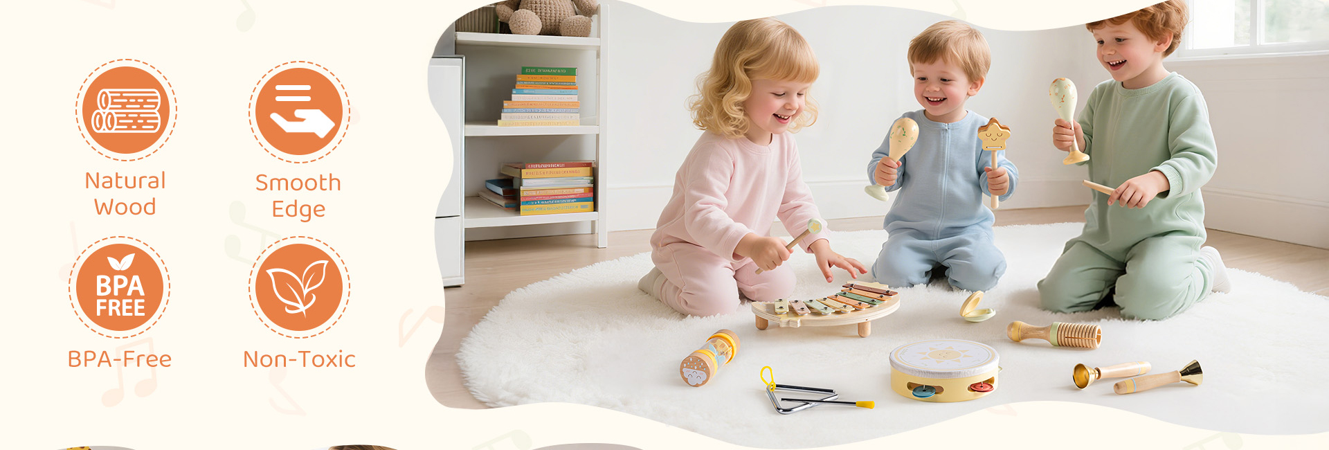 • 💖Sichere, natürliche Holzverarbeitung🪴 Diese Kinder Montessori-Musikspielzeuge aus hochwertigem Holz sind robust genug für energiegeladenes Spielen und sicher für kleine Hände. Das natürliche Holzmaterial enthält keine schädlichen Chemikalien und gibt Eltern ein gutes Gefühl. Kleinkinder können ihre musikalischen Entdeckungen genießen, ohne sich um raue oder unsichere Teile sorgen zu müssen.