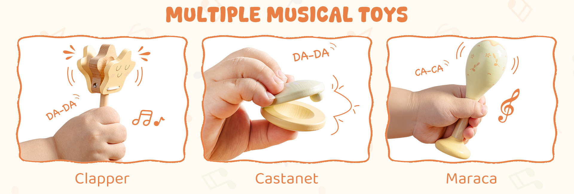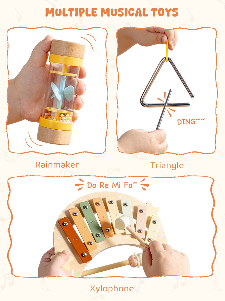 • 💫Spielende Entwicklung💗 Musik macht nicht nur Spaß, sie ist auch ein wichtiges Entwicklungsinstrument. Beim Spielen mit diesen Musikinstrumenten verbessern Kinder ihre Feinmotorik, indem sie jedes Spielzeug greifen und manipulieren. Das Erzeugen von Klängen fördert Kreativität und Selbstausdruck und hilft den Kleinen, Selbstvertrauen zu entwickeln, während sie ihre eigene Musik machen.
