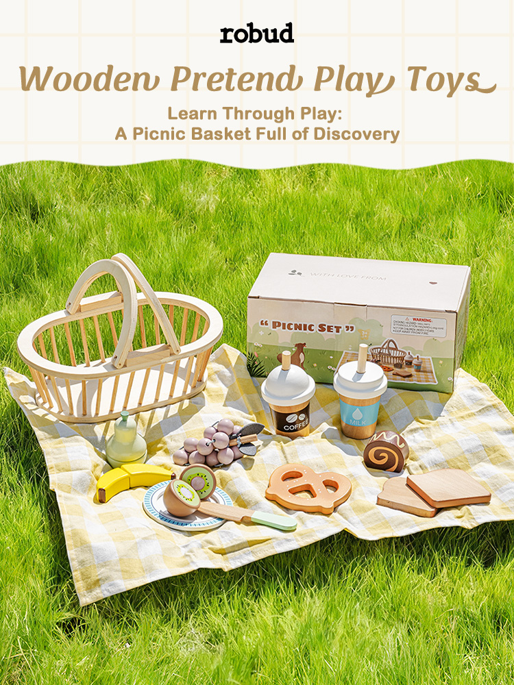 ROBUD Kinder-Picknick-Spiel-Lebensmittelset aus Holz