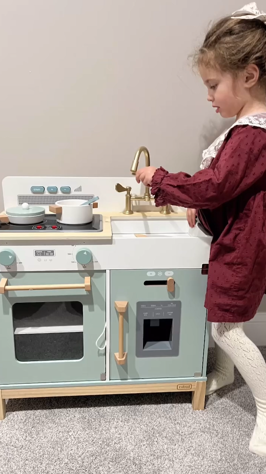 Echte kulinarische Magie: Unsere Küche geht über das Grundlegende hinaus – der Herd verfügt über authentische Lichter und Geräusche, die die Spielzeit in ein kulinarisches Spektakel verwandeln! Stellen Sie sich die Freude Ihres Kindes vor, das echte Küchenaktionen mit zischenden Geräuschen und lebensechter Beleuchtung nachahmt. Es ist der Spaß und die Realität, die anderen fehlen, und macht jede Spielsitzung zu einem magischen Abenteuer!