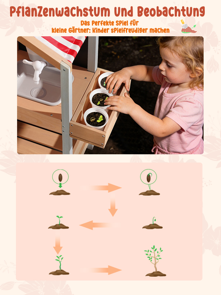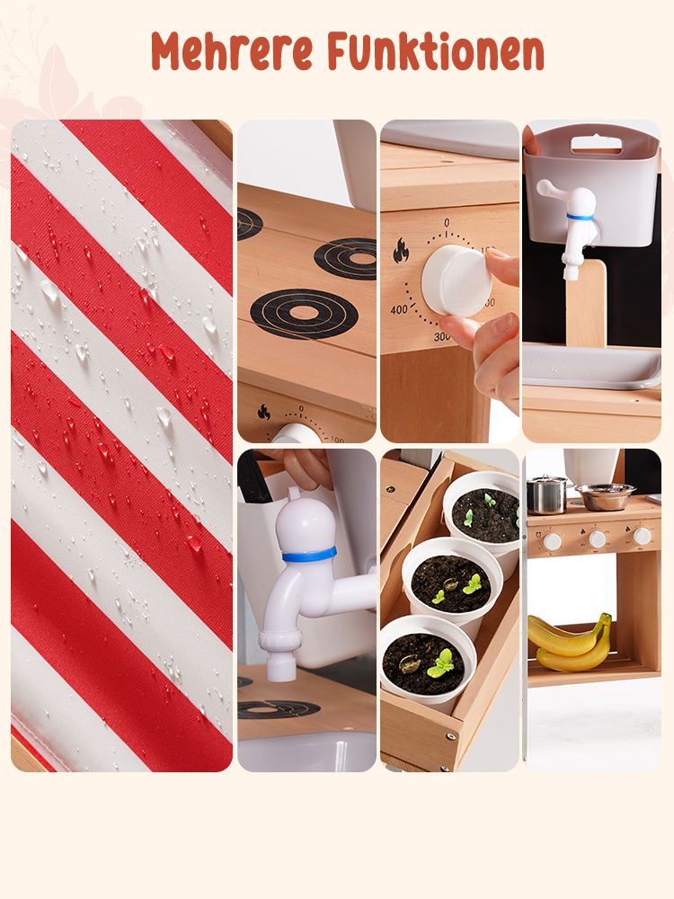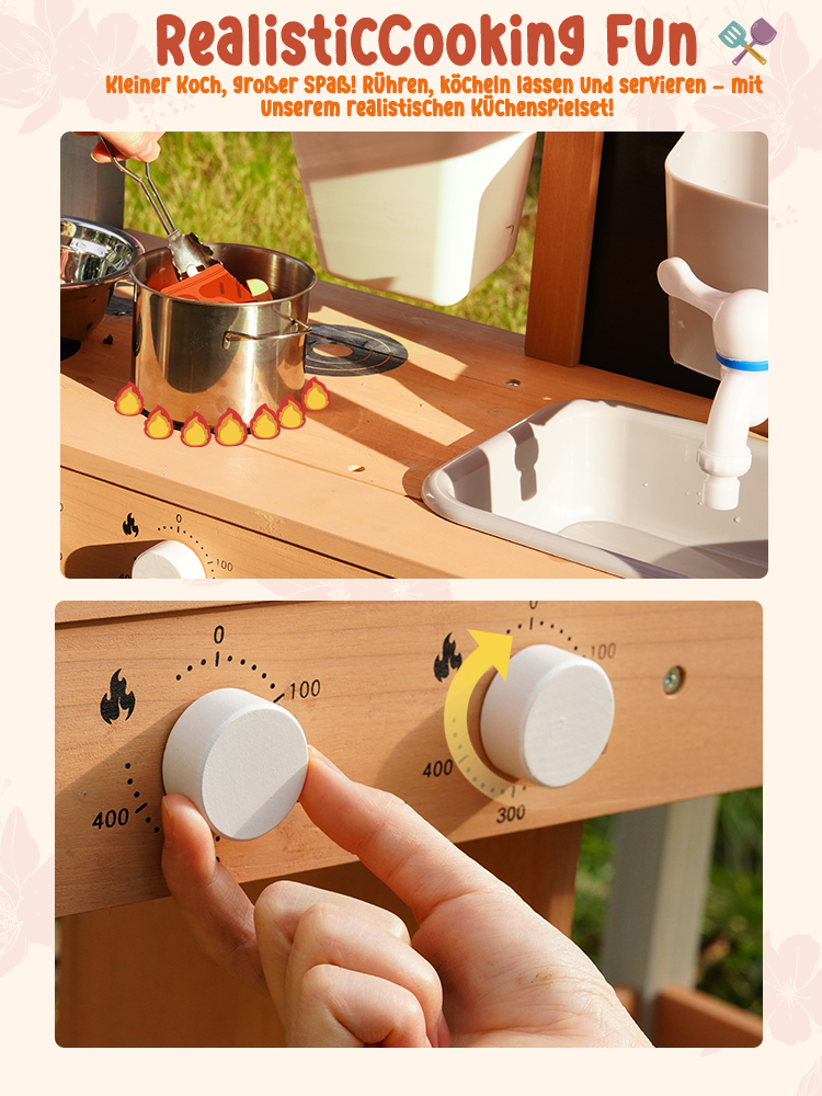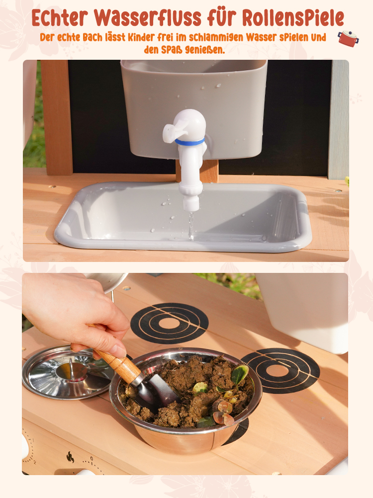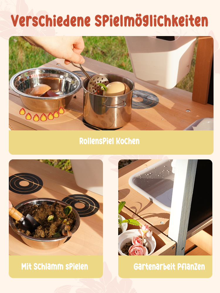 Outdoor-Matschküche Spaß--Lassen Sie Kinder die Natur und Kreativität mit dieser Outdoor-Matschküche erkunden. Entworfen für das Spielen im Garten und im Hinterhof, können Kinder Matsch, Wasser, Blätter und Sand mischen, um ihre eigenen imaginären Mahlzeiten und Abenteuer im Freien zu kreieren.