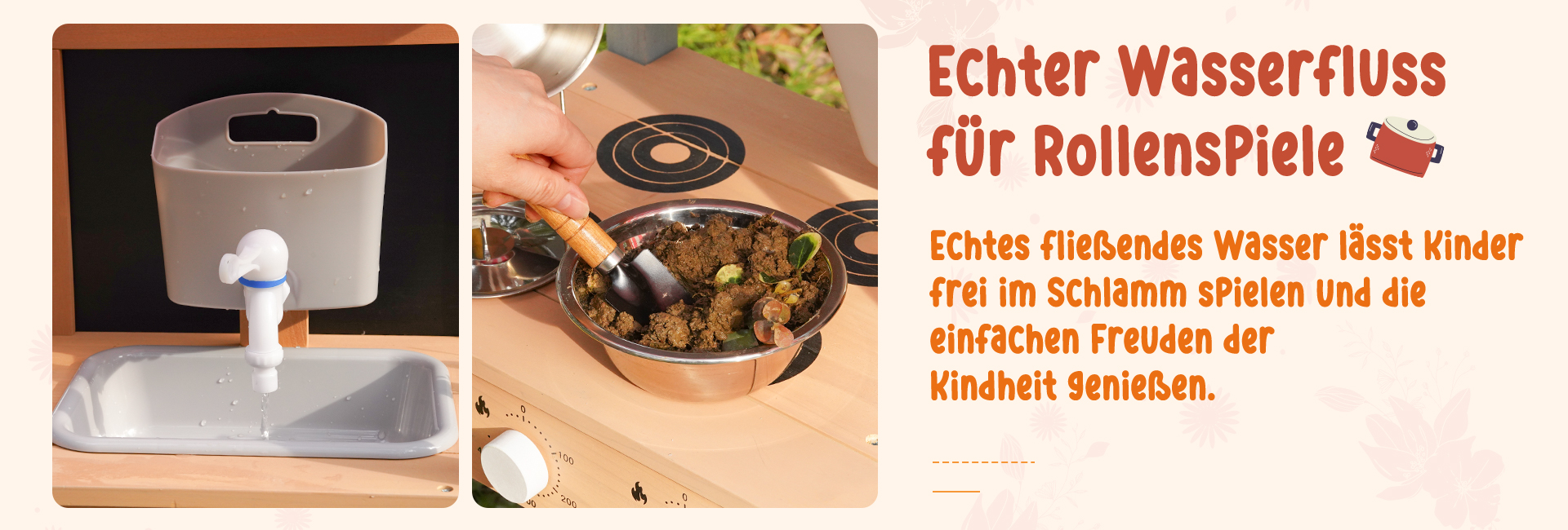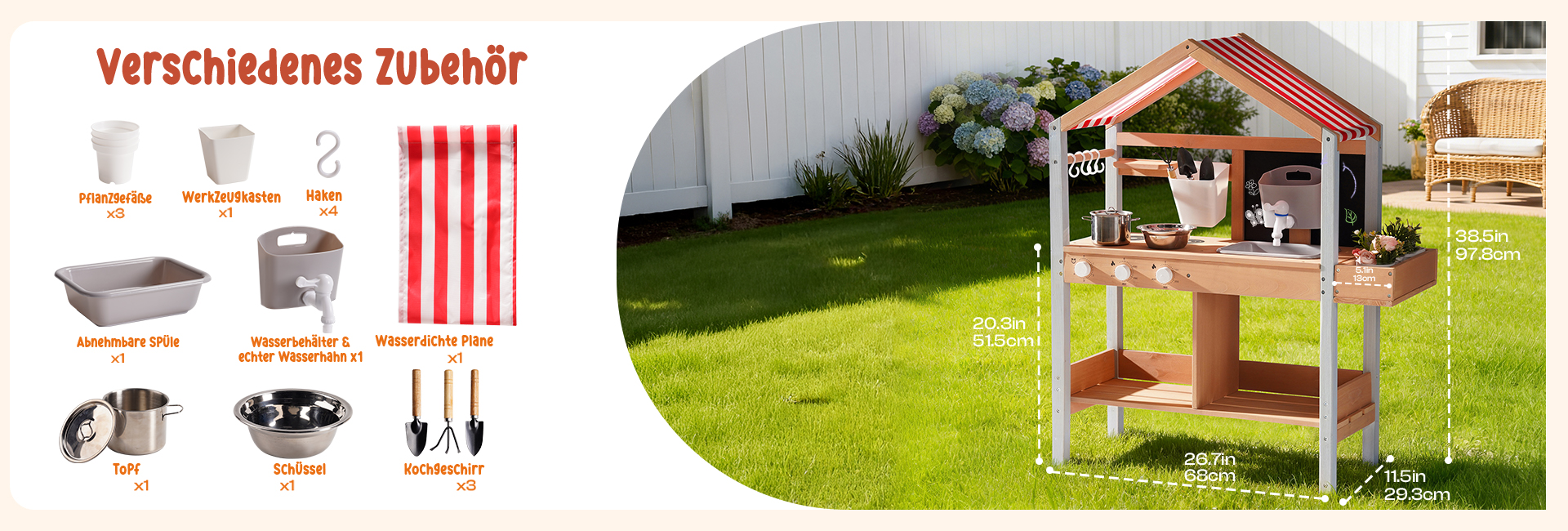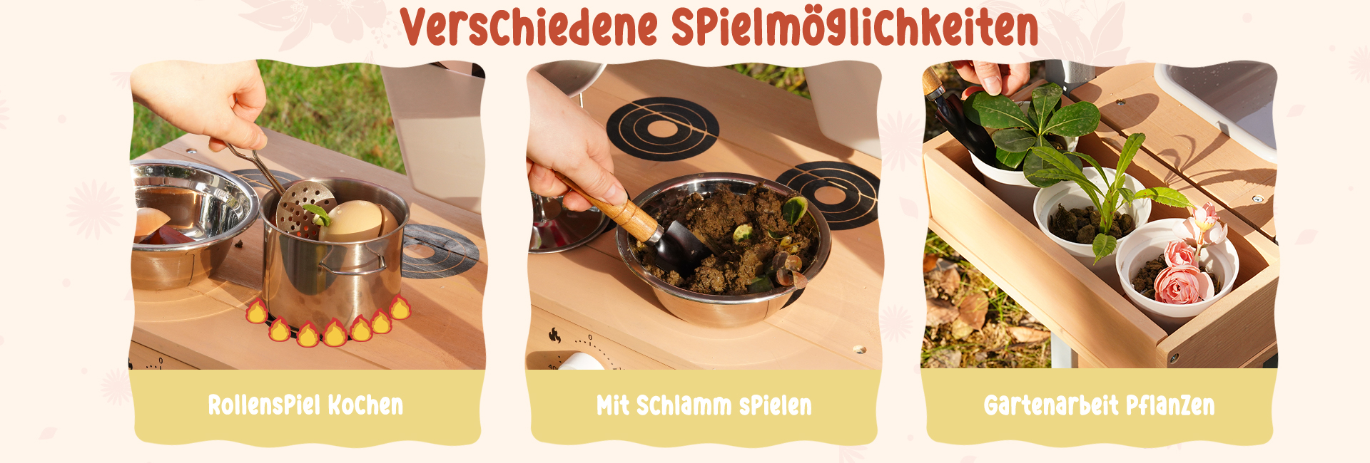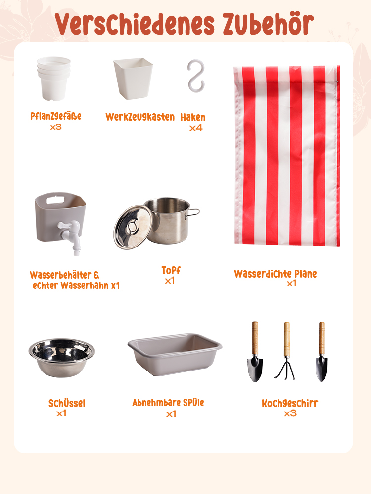 Outdoor-Matschküche Spaß--Lassen Sie Kinder die Natur und Kreativität mit dieser Outdoor-Matschküche erkunden. Entworfen für das Spielen im Garten und im Hinterhof, können Kinder Matsch, Wasser, Blätter und Sand mischen, um ihre eigenen imaginären Mahlzeiten und Abenteuer im Freien zu kreieren.