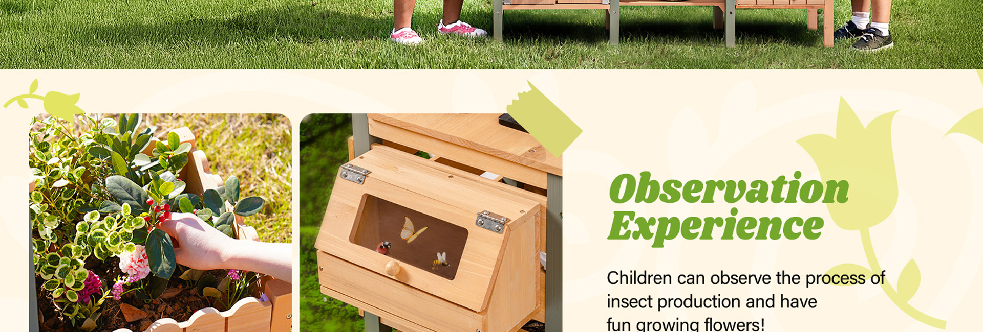 Robuste & sichere Konstruktion: Hergestellt aus hochwertigem Holz, ist diese Mud Kitchen langlebig und hält den Bedingungen im Freien stand. Das kinderfreundliche Design sorgt für sicheres Spielen mit glatten Kanten und robuster Konstruktion für stundenlangen Spaß.