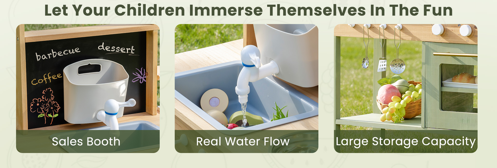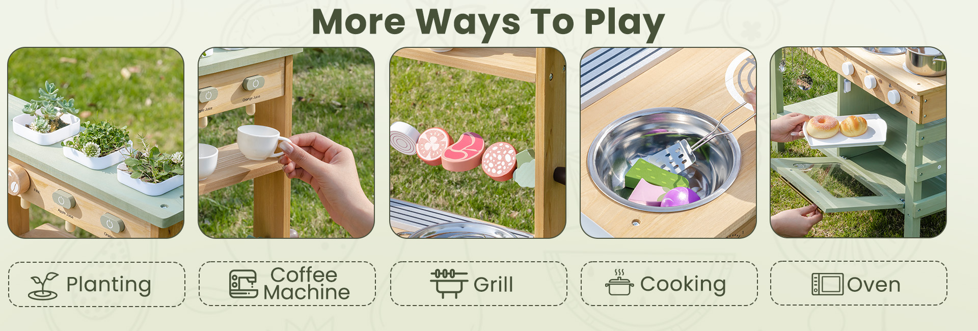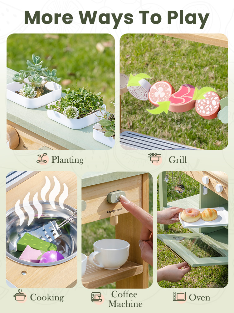 【Imagination & Social Development】Mit der Außen-Matschküche für Kinder können Kinder das Verhalten von Erwachsenen nachahmen, was ihre sozialen Fähigkeiten und ihre Erzählfähigkeiten verbessert, während sie aktiv und engagiert bleiben.
