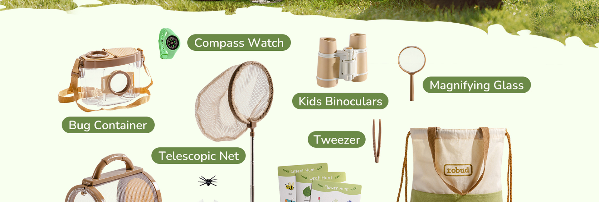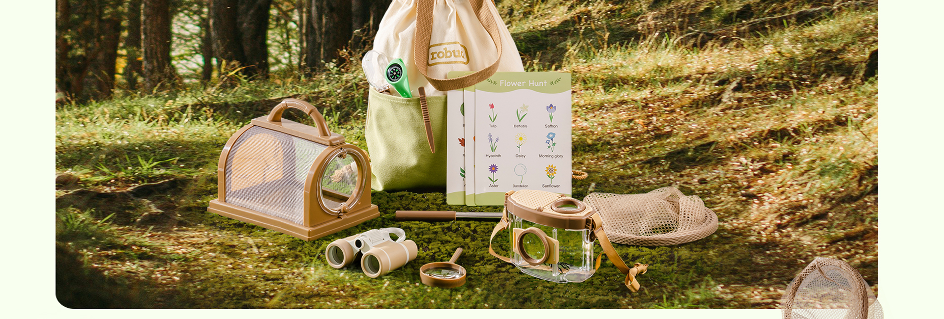 【Neugier wecken】 Das ROBUD Kinder-Abenteuer-Kit wurde entwickelt, um Neugier zu wecken und die Liebe zur Erkundung der Natur bei Kindern zu fördern.