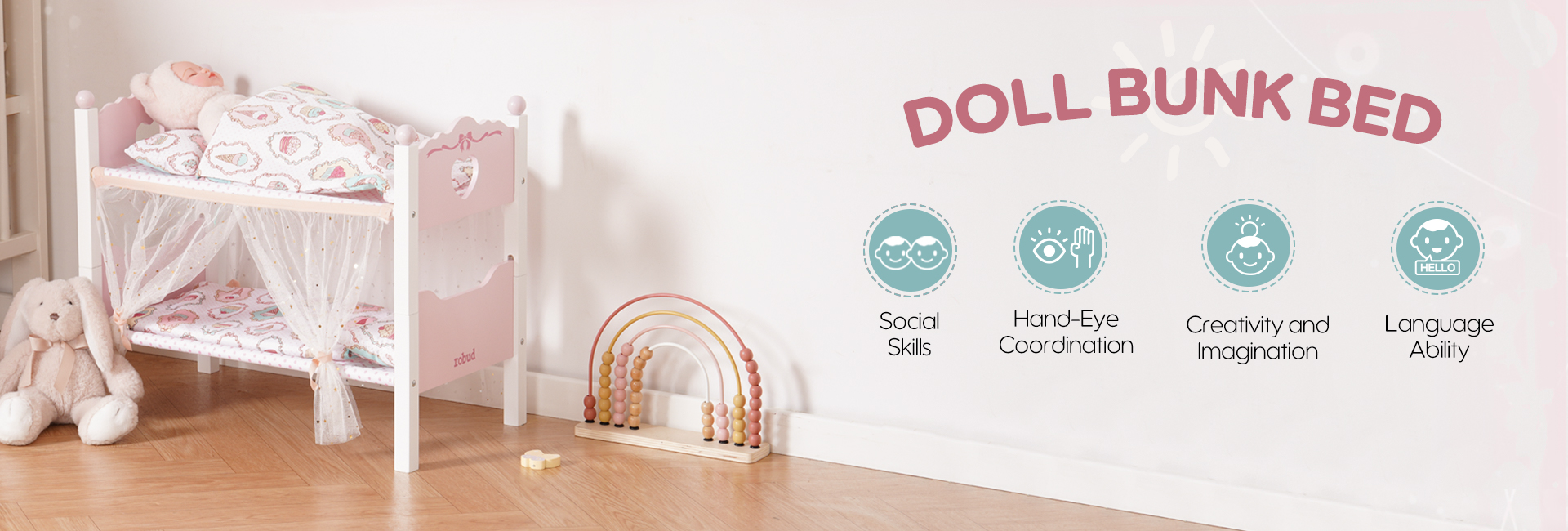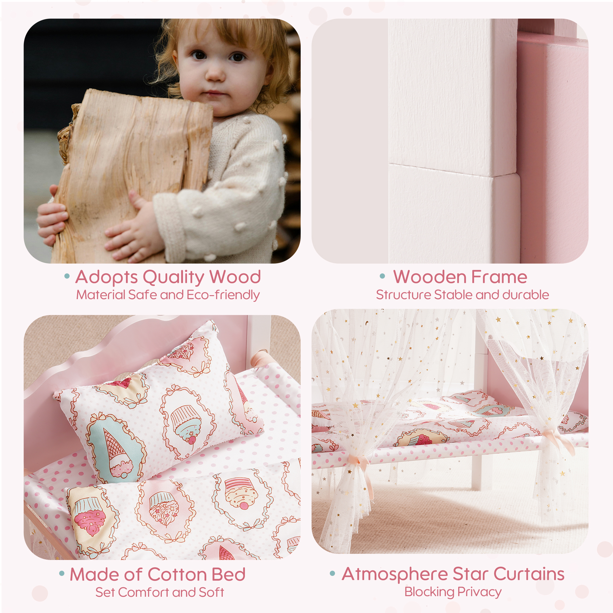 【Robuste Konstruktion】Unser Spielzeugbabybett besteht vollständig aus Holz und bietet im Vergleich zu Kunststoffalternativen überlegene Stärke und Haltbarkeit, was jahrelangen zuverlässigen Gebrauch gewährleistet.