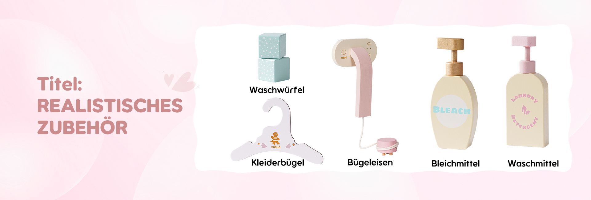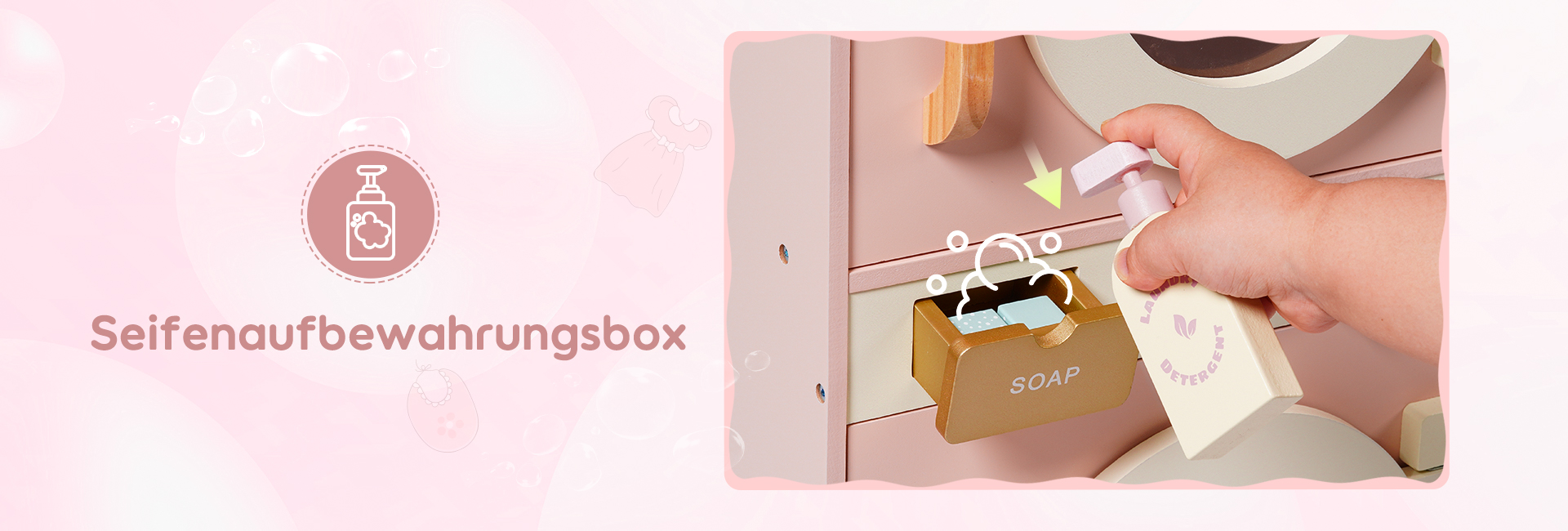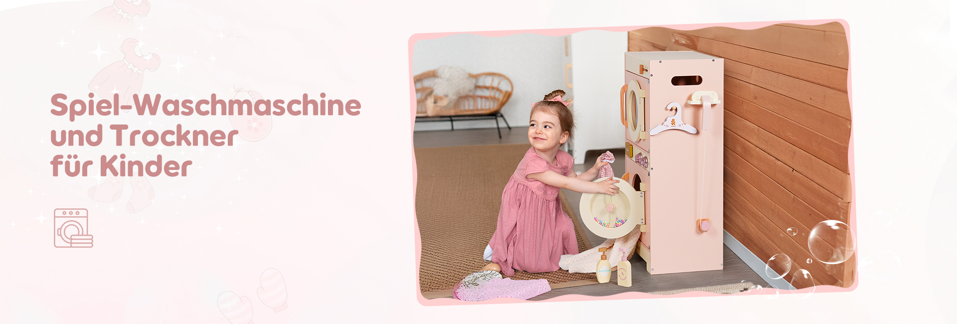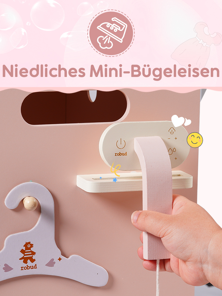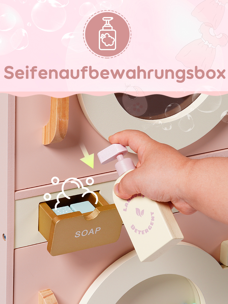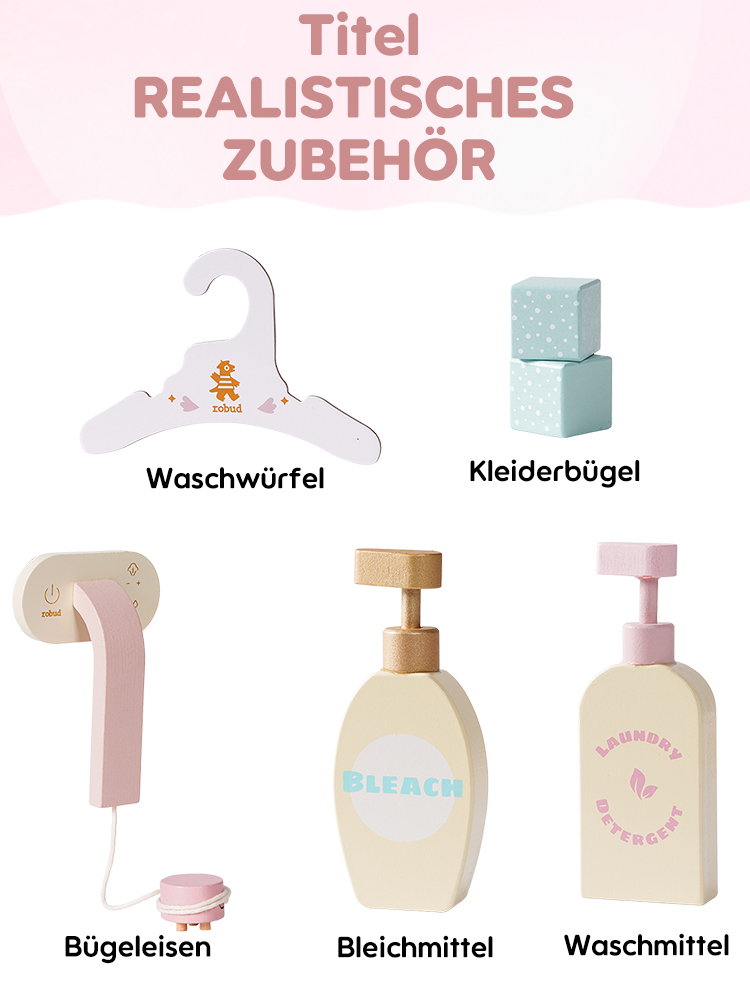 🌊Reiche Zubehörteile: Diese Waschmaschine ist mit einer Vielzahl von Zubehörteilen ausgestattet, um das Spielerlebnis der Kinder zu verbessern. Sie enthält Waschmittel, Bleichmittel, Seife und eine Seifenschale. Darüber hinaus kommt sie auch mit einem Bügelbrett, einem Bügeleisen und einem Wäschekorb, die alle notwendigen Zubehörteile für die tägliche Wäsche bereitstellen. Machen Sie sich bereit, dass Ihre Kinder ein Wäsche-Spielabenteuer beginnen! (Kleidung nicht enthalten)