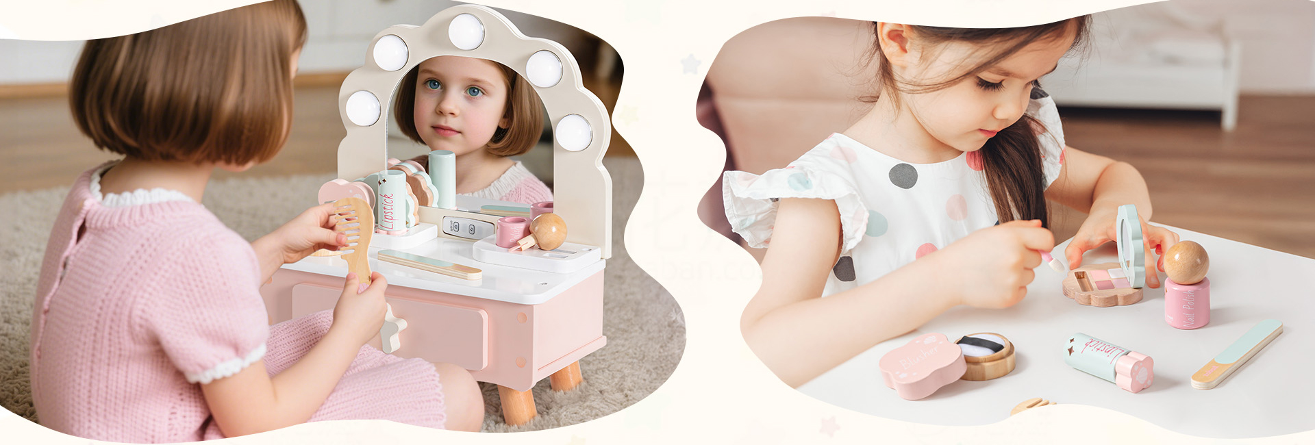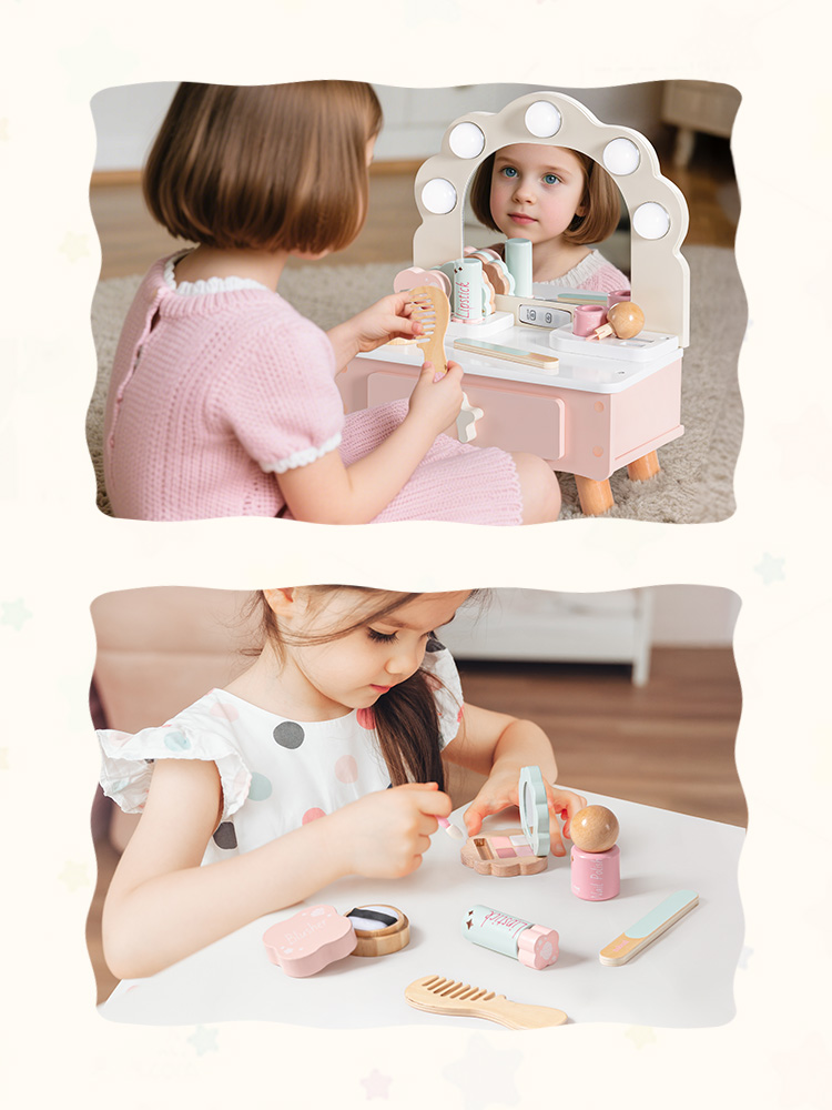 Fantasievolles Rollenspiel - Dieses Schminktisch-Set weckt Kreativität und fördert die Hand-Augen-Koordination, während Kinder Rollenspiele erkunden. Sie können so tun, als würden sie sich auf einen Schultag, eine Teeparty vorbereiten oder einfach eine Verwöhnsitzung genießen, was es zu einer großartigen Aktivität für die Entwicklung von Fantasie und Selbstvertrauen macht.