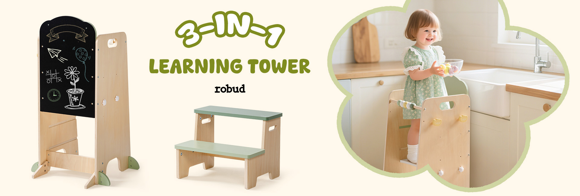 ROBUD Stehturm Für Kleinkinder mit Tritthocker-Set