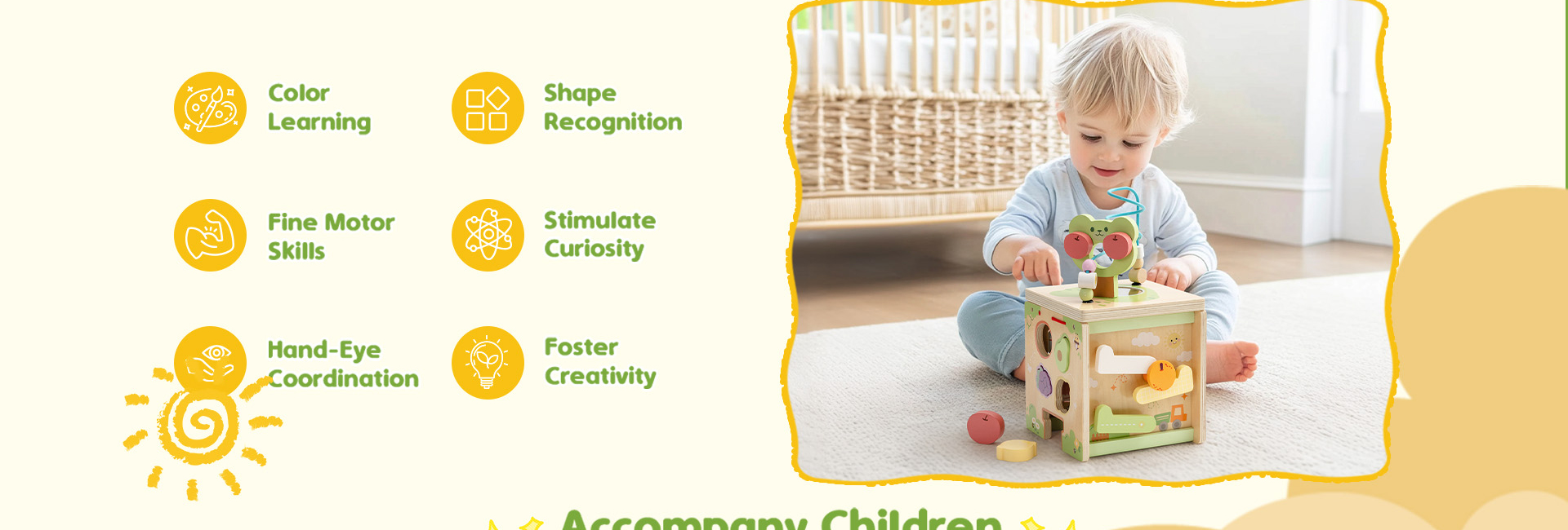 Montessori-Spielzeug: Entwickelt für Kinder ab 12 Monaten, ist dieser Aktivitätswürfel für Babys perfekt, um Mustererkennung, Klangunterscheidung und Feinmotorik auf eine unterhaltsame und interaktive Weise zu fördern. Es ist ein Frühlerntool, das die Vorstellungskraft und das intellektuelle Wachstum eines Kindes anregt.