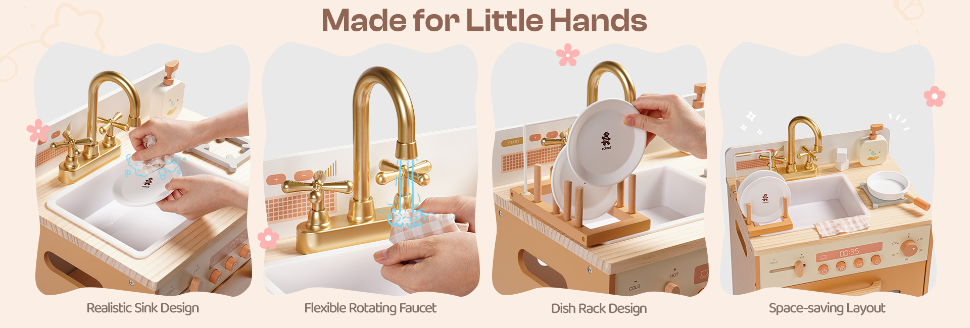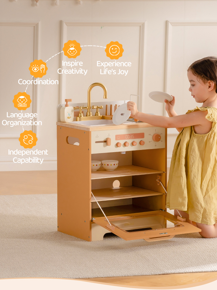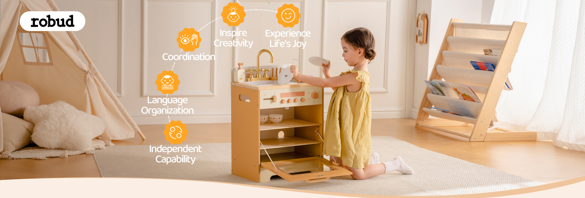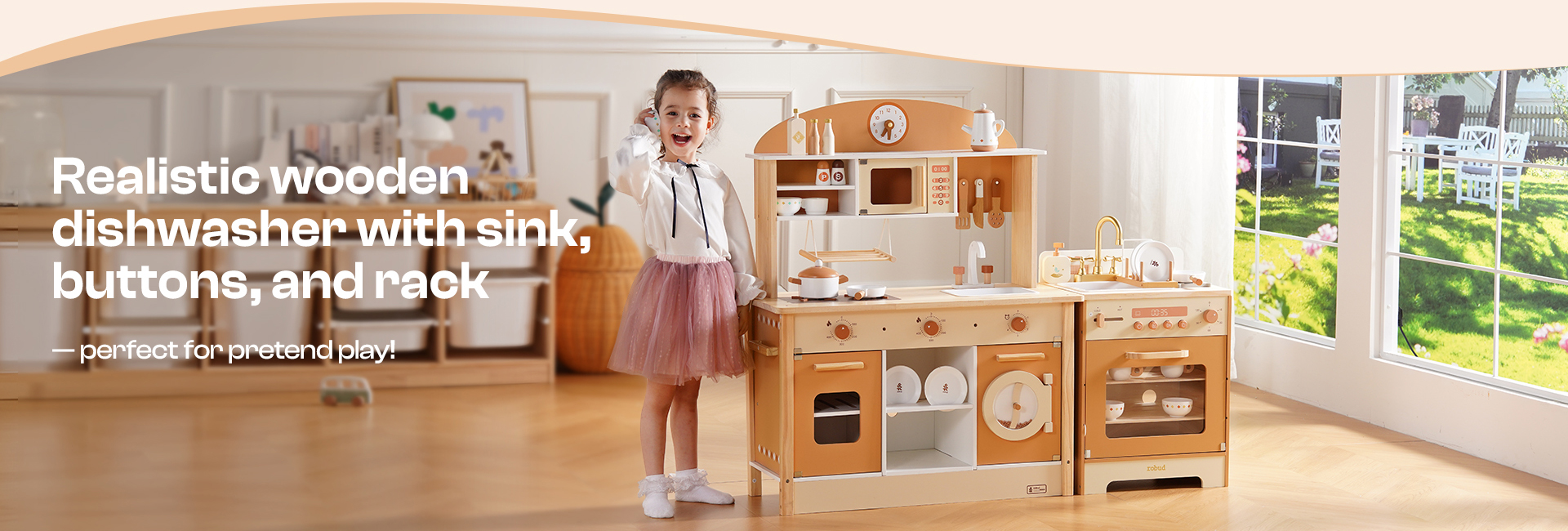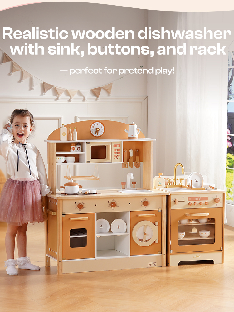 Die Verwendung hochwertiger Materialien ist ein Markenzeichen der Marke ROBUD und unterstreicht deren unermüdliches Streben nach höchster Qualität und erstklassiger Verarbeitung. Dieser Geschirrspüler besticht durch sein sorgfältig gestaltetes Design, das exquisite Verarbeitung mit grenzenloser Kreativität verbindet. Von seinem niedlichen Aussehen bis hin zu seinen realistischen Funktionen wurde jedes Detail mit viel Liebe zum Detail gestaltet, sodass Kinder beim Spielen Stil und Geborgenheit erleben können. Dieser Geschirrspüler vereint Reinigung, Aufbewahrung und Einstellung in einem Gerät und ist mit realistischen Soundknöpfen ausgestattet, die Kindern bei simulierten Reinigungsvorgängen echten Spaß bereiten. Die Kombination der vielfältigen Funktionen bereichert das Spielerlebnis und regt die Kreativität der Kinder an.