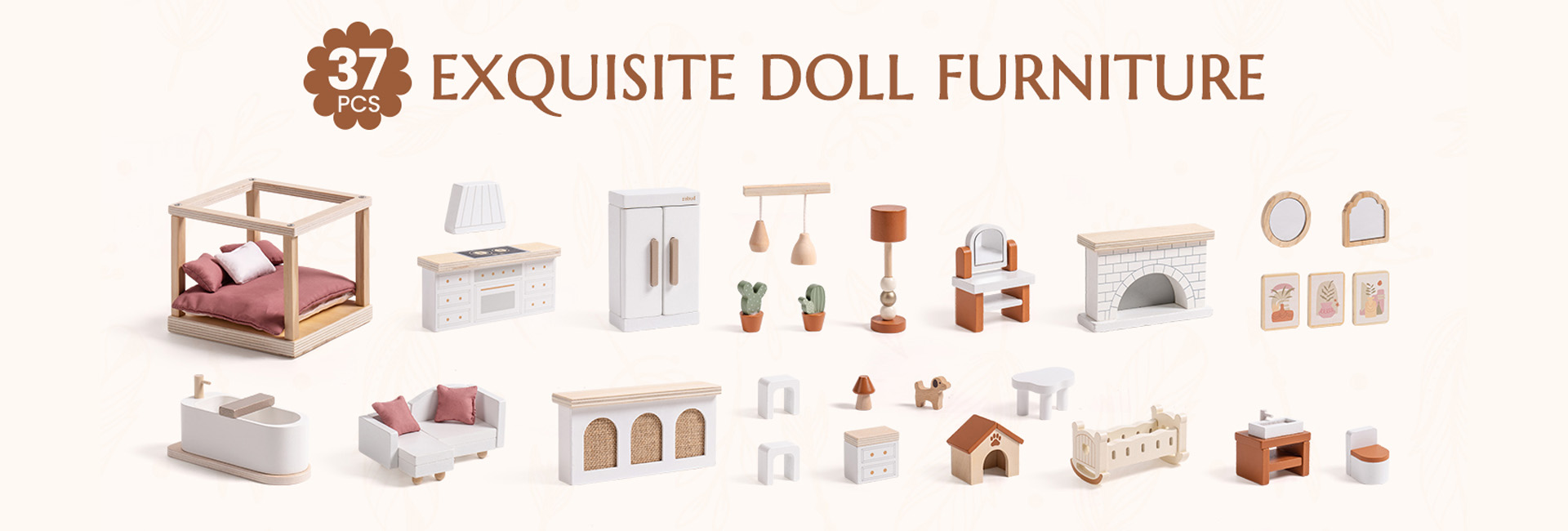 Enthält 37 Möbelstücke & Zubehör: Das Puppenhaus wird mit 37 sorgfältig gestalteten Möbelstücken und Zubehör geliefert, sodass Kinder jeden Raum vollständig einrichten und dekorieren können. Diese Vielfalt fördert die Kreativität und ermutigt die Kinder, ihre Traumwohnräume zu gestalten.