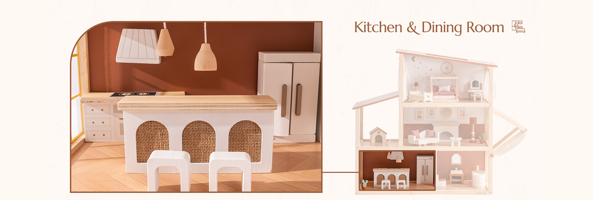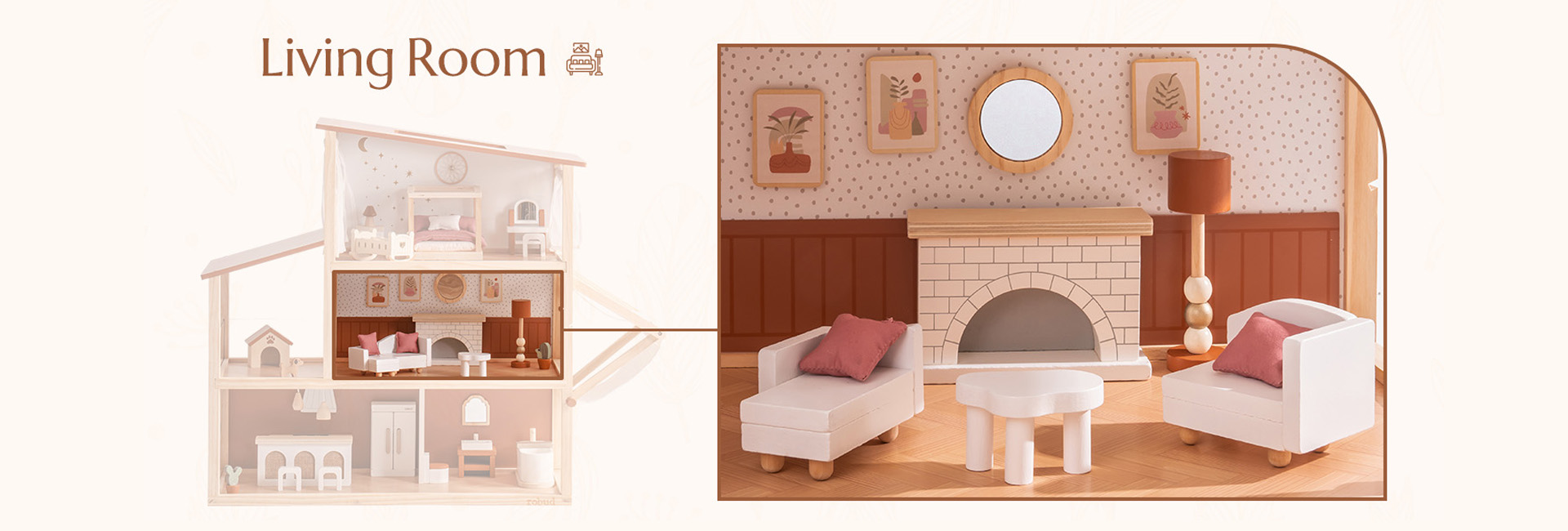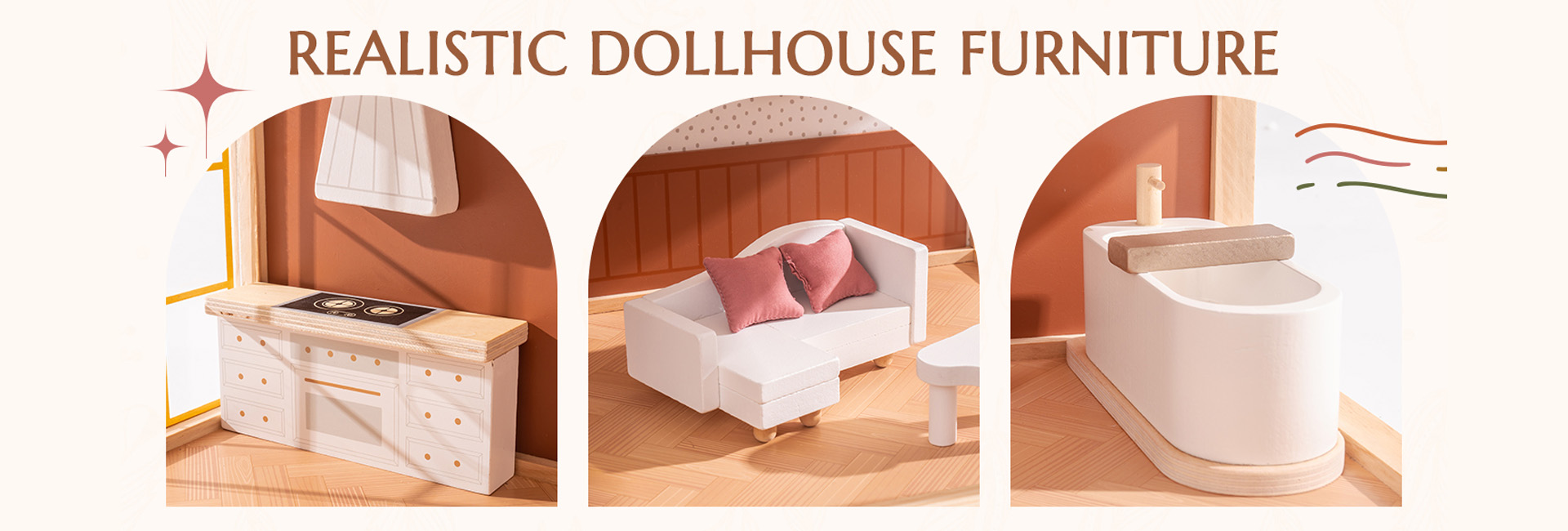 Fördert fantasievolles Rollenspiel: Die detaillierten Räume und die enthaltenen Möbel inspirieren die Kinder, Geschichten zu kreieren und Rollenspiele zu spielen. Dies hilft, soziale Fähigkeiten, Problemlösungsfähigkeiten und Kreativität zu entwickeln, während sie verschiedene Szenarien erkunden.