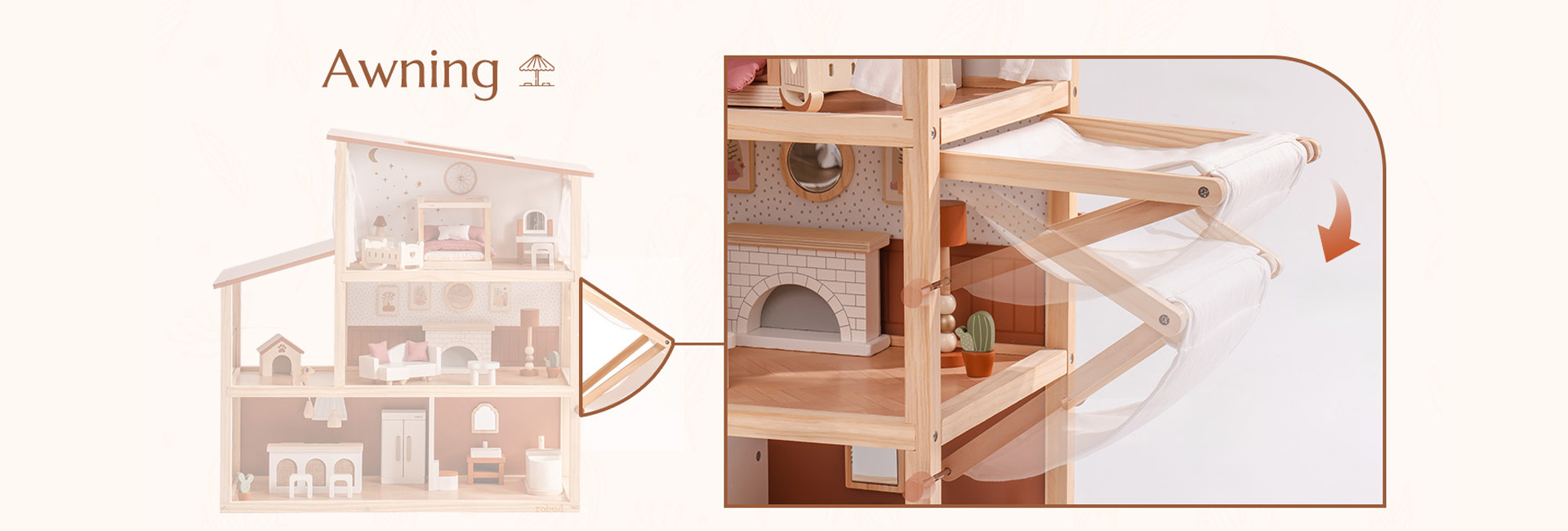 Robuste Holzbauweise: Hergestellt aus hochwertigem Holz, ist dieses Puppenhaus für eine lange Nutzungsdauer konzipiert. Die kinderfreundlichen Oberflächen sorgen für ein sicheres und angenehmes Spielerlebnis für junge Abenteurer.
