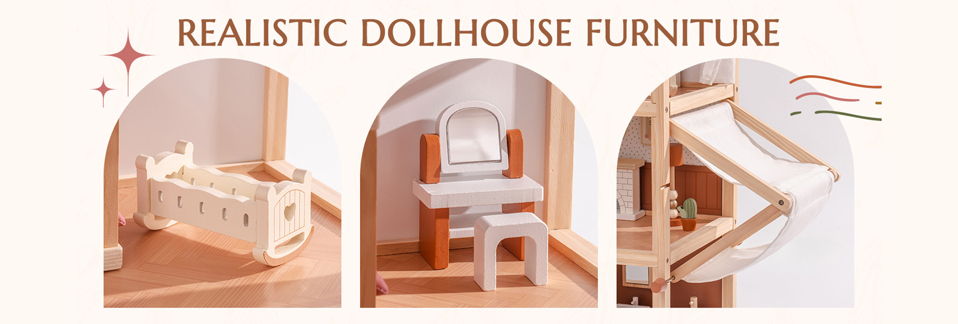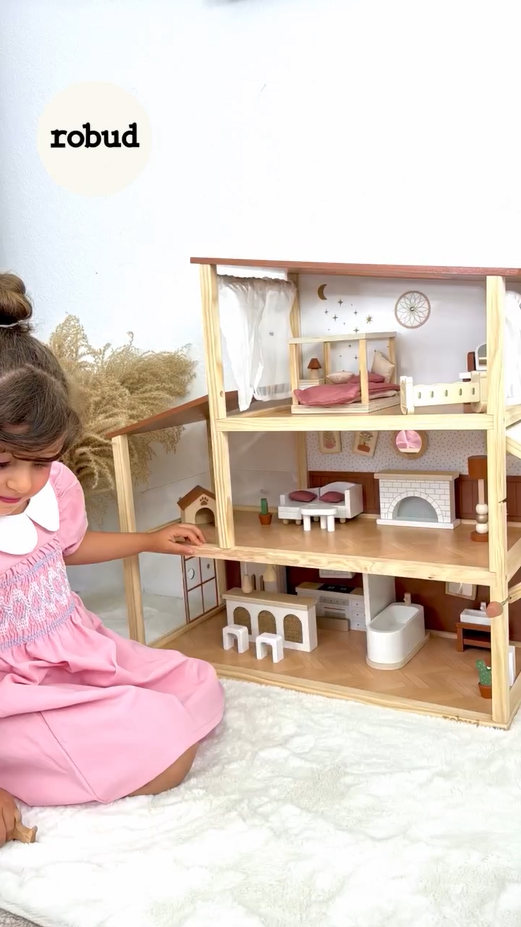 Introduce your child into a world of imagination with our charming wooden toy Romantic Dollhouse designed for little ones. Well-made and decorated with exquisite details, this dollhouse is an enchanting haven for creative play. The solid wooden construction ensures durability, making it a treasured play companion.