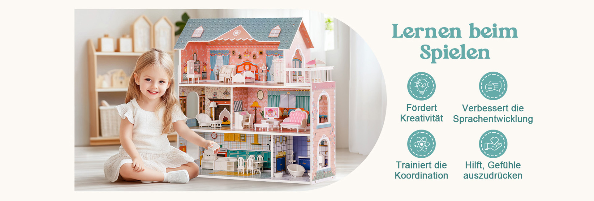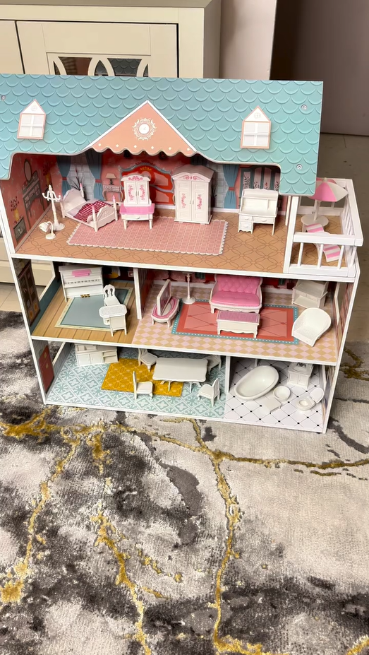 FÖRDERT KREATIVE FANTASIE: Es ist ein Puppenhaus für kleine Mädchen. Sie wird ständig die Möbel umstellen, um ein anderes Innendesign zu schaffen und tut so, als wäre es ihre tatsächliche Wohnumgebung.