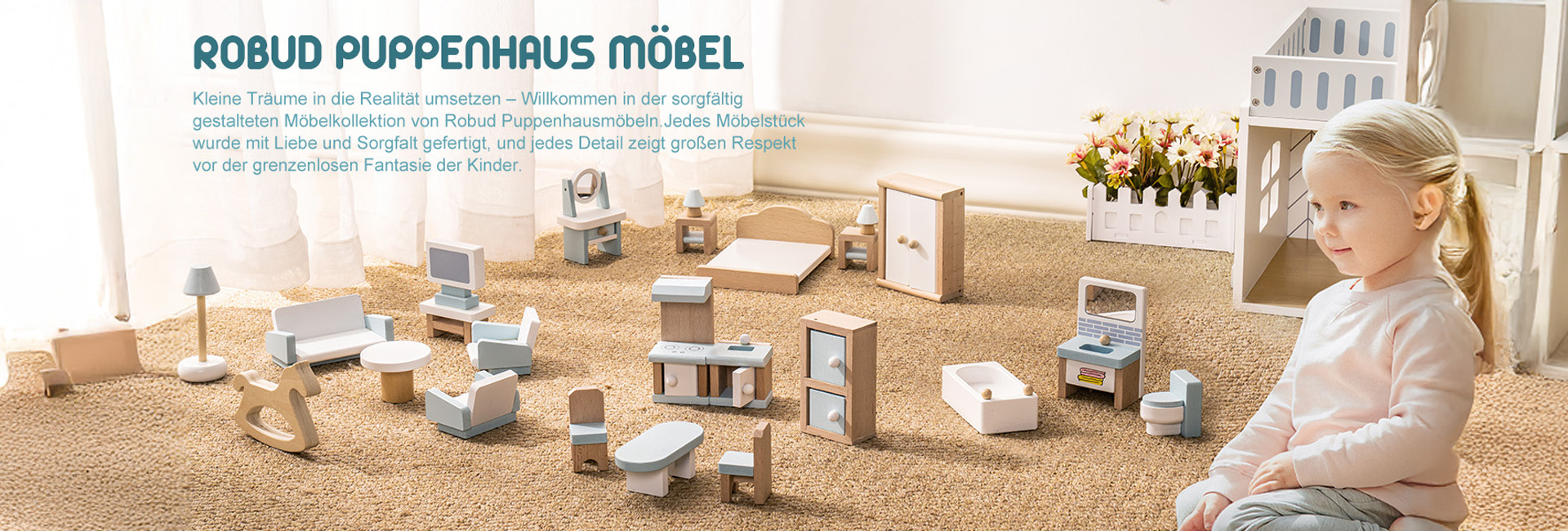 EINE TOP-WAHL FÜR GESCHENKE: ROBUD Puppenhausmöbel sind nicht nur ein außergewöhnliches Geschenk für Kinder; es ist eine herzerwärmende Wahl, die ihre Kindheit erhellt. Jedes sorgfältig gefertigte Möbelstück dient als einzigartiges und erfreuliches Geschenk, das Freude bringt und bleibende Erinnerungen schafft, sei es zu Geburtstagen, Feiertagen oder besonderen Anlässen. Das Möbelset ist in einer exquisiten bunten Box verpackt, es ist das perfekte Geschenk für Ihr kleines Kind.