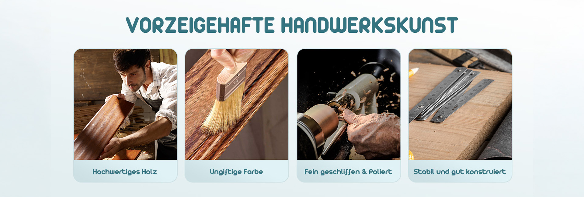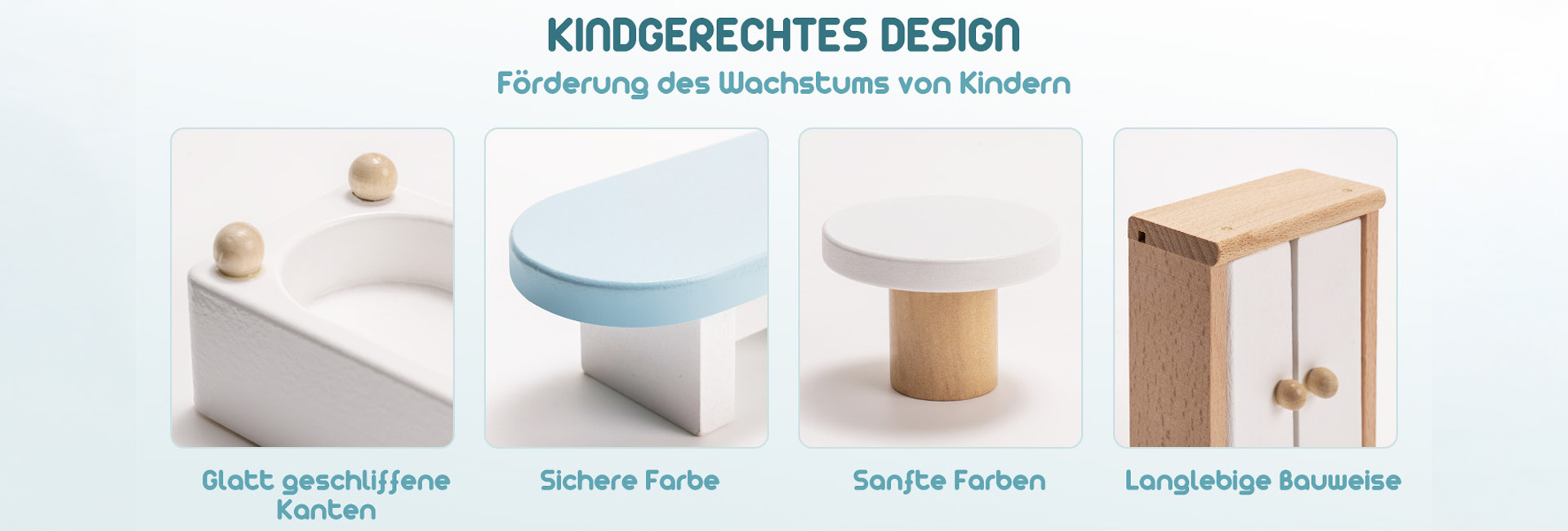 SICHERE MATERIALIEN: Wir verpflichten uns, ungiftige Farben und langlebiges Holz zu verwenden, die strengen Sicherheitstests unterzogen wurden und die höchsten Sicherheitsstandards erfüllen. Unser Engagement besteht darin, Kindern sichere und zuverlässige Produkte zu bieten, um sicherzustellen, dass sie den besten Schutz während der Spielzeit erhalten.