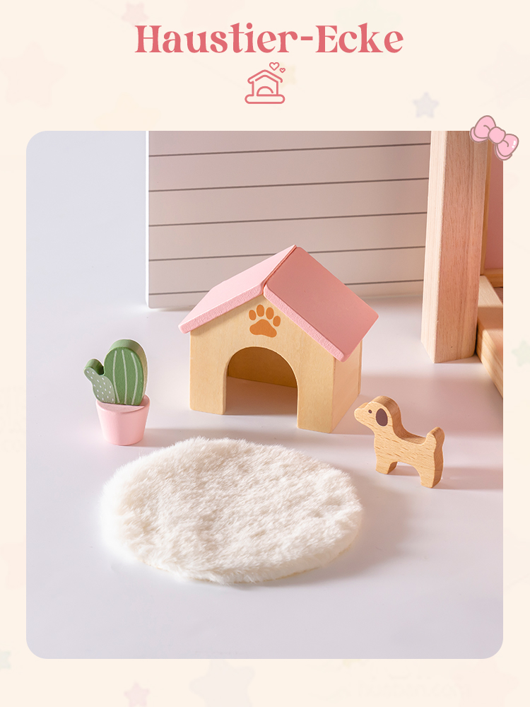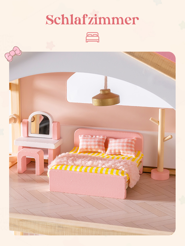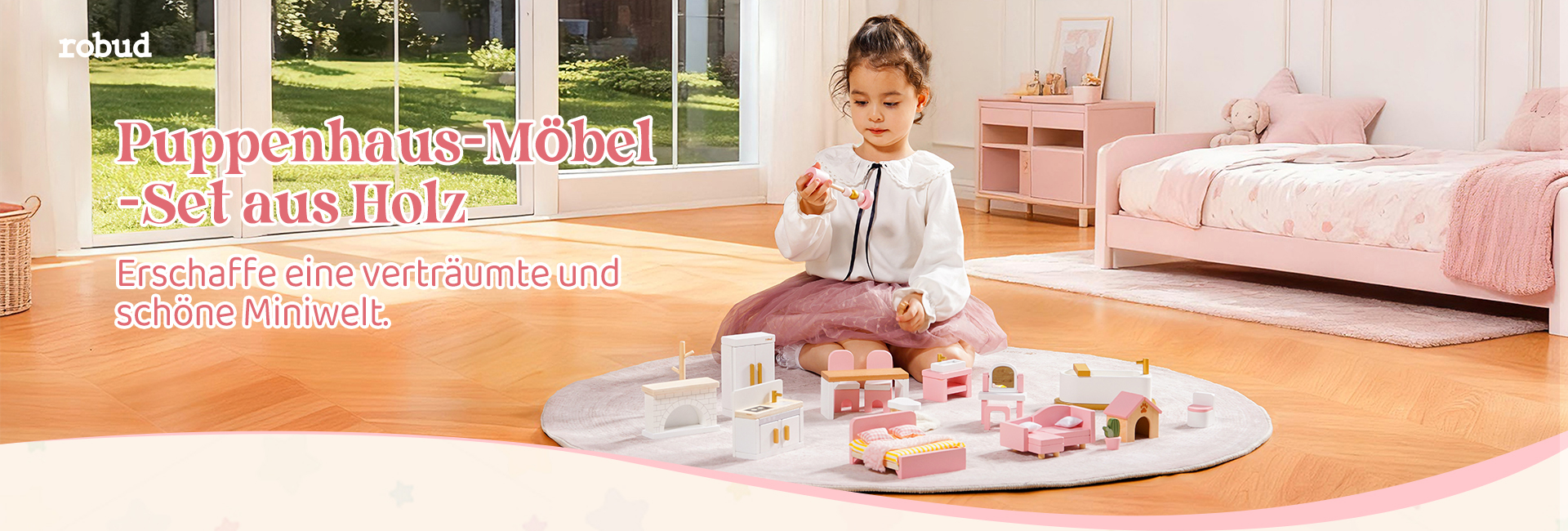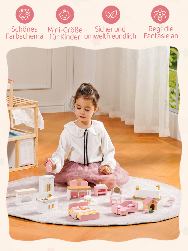 ROBUD Puppenhausmöbel-Set aus Holz - Rosa