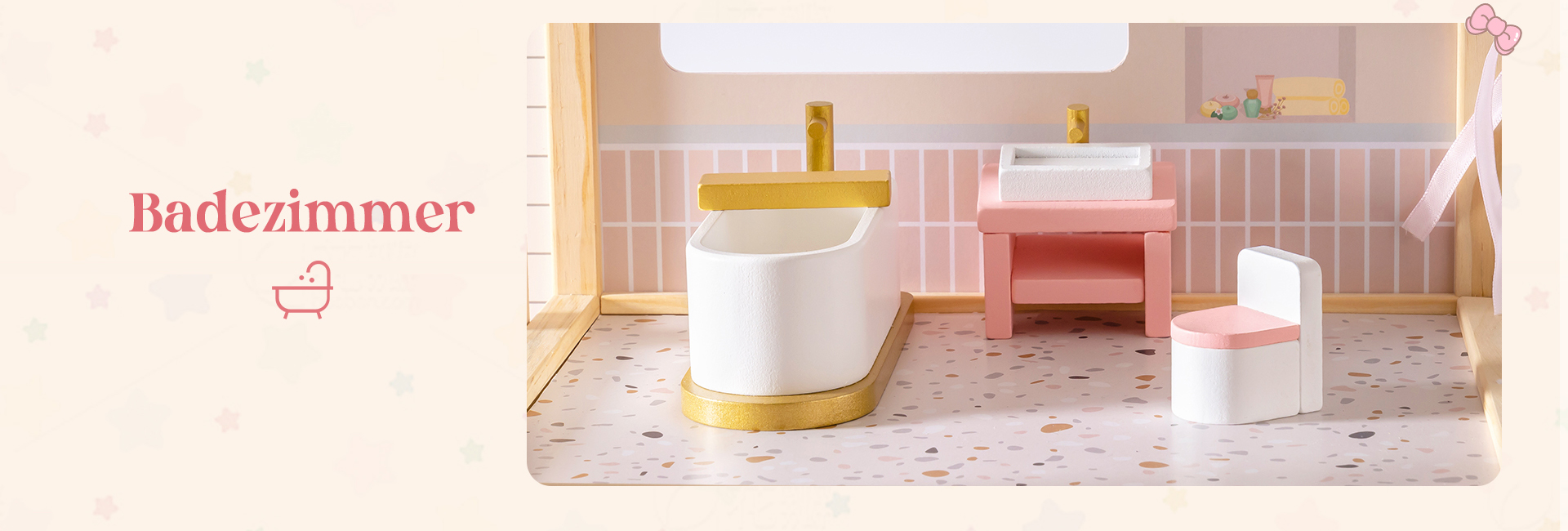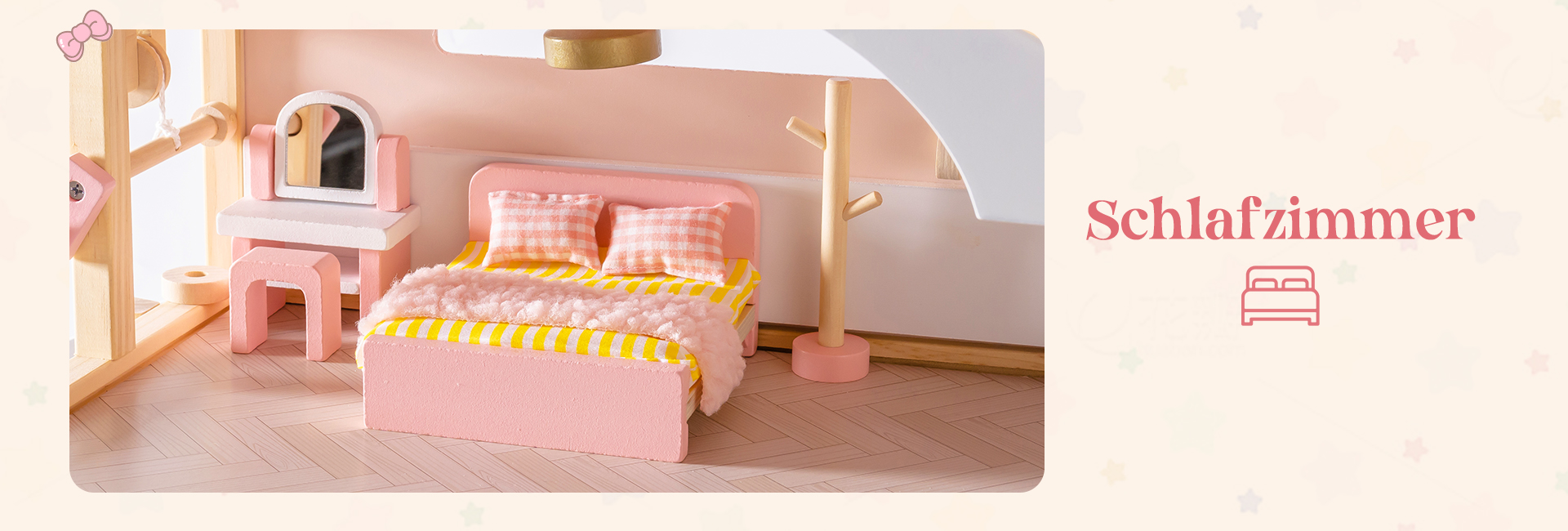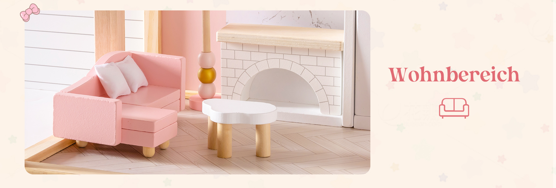 ROBUD Puppenhausmöbel-Set aus Holz - Rosa