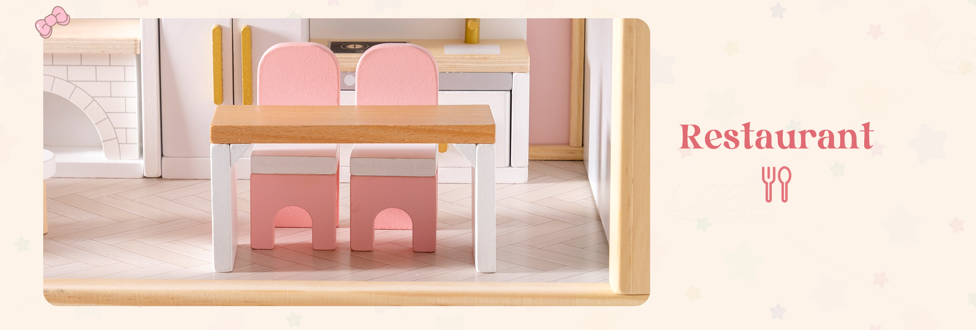 ROBUD Wooden Dollhouse Furniture Set - Pink
